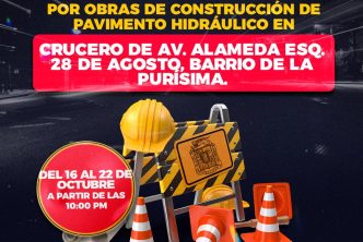 Los trabajos se llevarán a cabo del 16 al 22 de octubre de 2025, periodo en el que se realizarán labores de demolición de la carpeta existente, colado y fraguado del nuevo concreto hidráulico, lo que implicará cierres totales a la circulación durante los días de intervención.