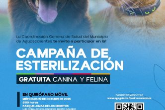 La coordinadora general de Salud, María Teresa Rendón Esquivel informa que el Quirófano Móvil Municipal visitará el día 22 de octubre Lomas de los Negritos y el 23 del mismo mes la Casa del Bien Común La Estrella, donde tendrá los servicios de vacunación antirrábica, desparasitación y esterilizaciones.