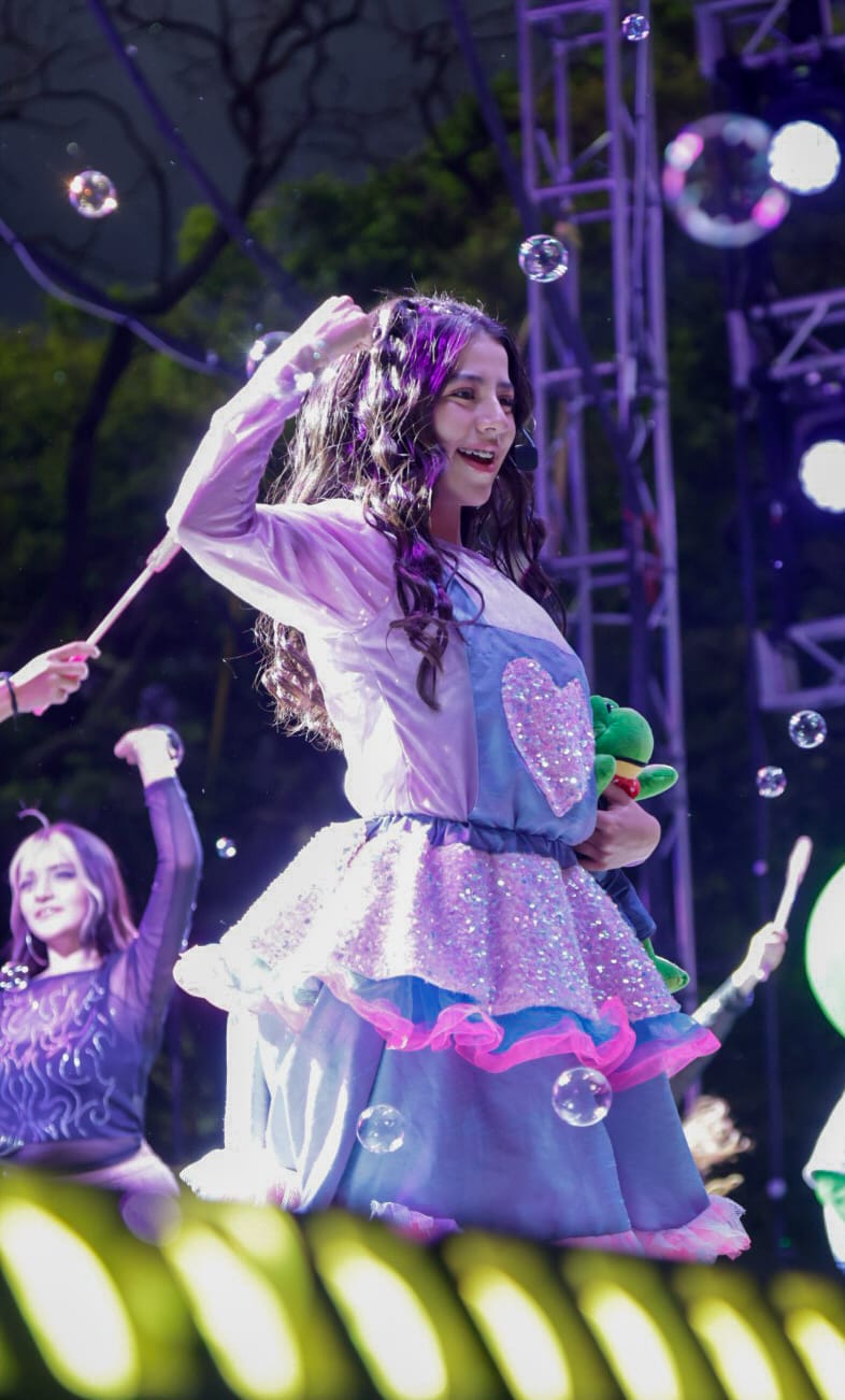 La jornada musical inició con el Tributo a Lara Campos, que encendió el ambiente con sus populares temas. El espectáculo, cargado de alegría y colores, cautivó a los más pequeños, quienes bailaron y cantaron junto a los personajes en el escenario, creando un momento mágico de interacción y diversión.