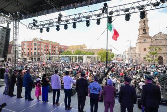 «Estamos celebrando 450 años de trabajo, de la cultura del esfuerzo que nos han enseñado nuestros abuelos, que nos han enseñado que no hay que mirar hacia abajo, arriba, que hay que mirar de frente, eso es Aguascalientes. No importa de dónde hayamos venido, esta es la tierra que nos abraza, que nos hermana a todas y todos», recalcó Leo Montañez.