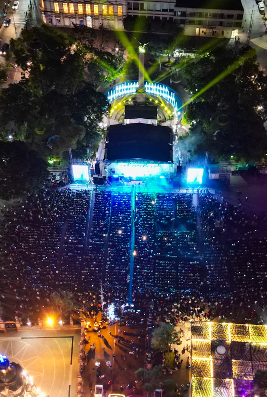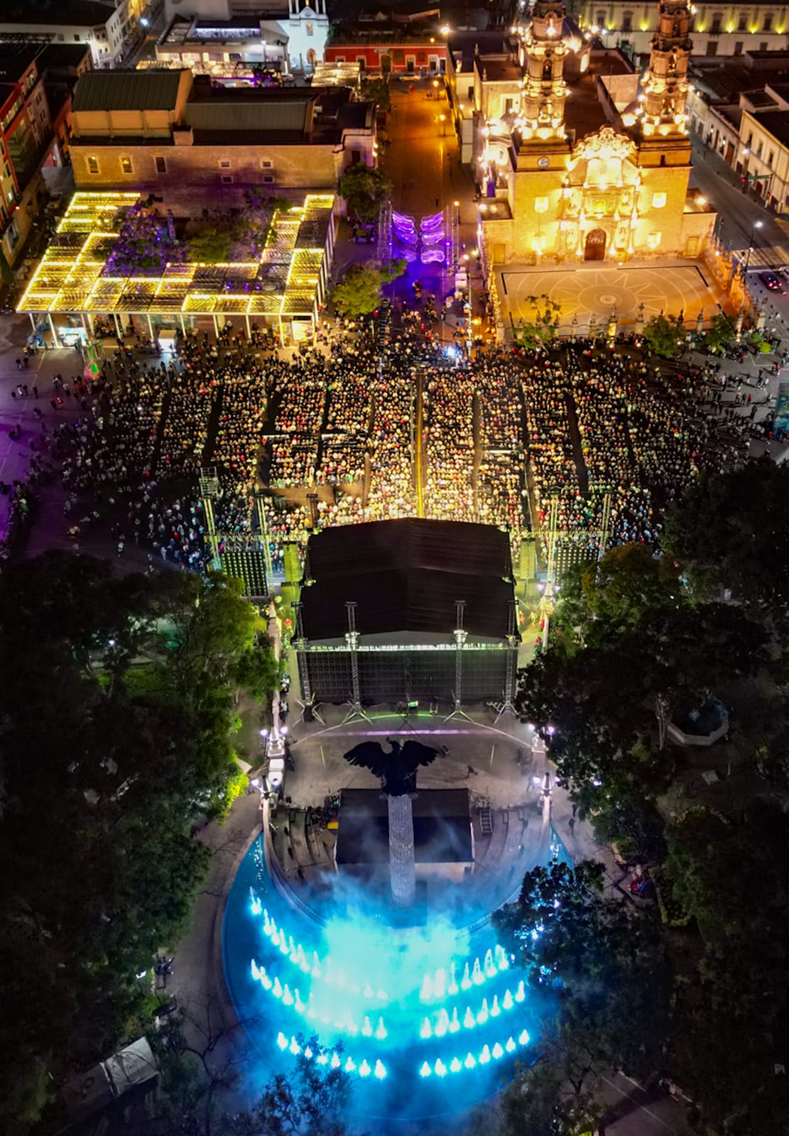 Una noche mágica se vivió este domingo en el Escenario Principal de la Exedra, en el Centro Histórico, con la presentación estelar de la legendaria agrupación Los Ángeles Negros, como parte del Festival Cultural de la Ciudad de Aguascalientes y la conmemoración del 450 Aniversario de su fundación.