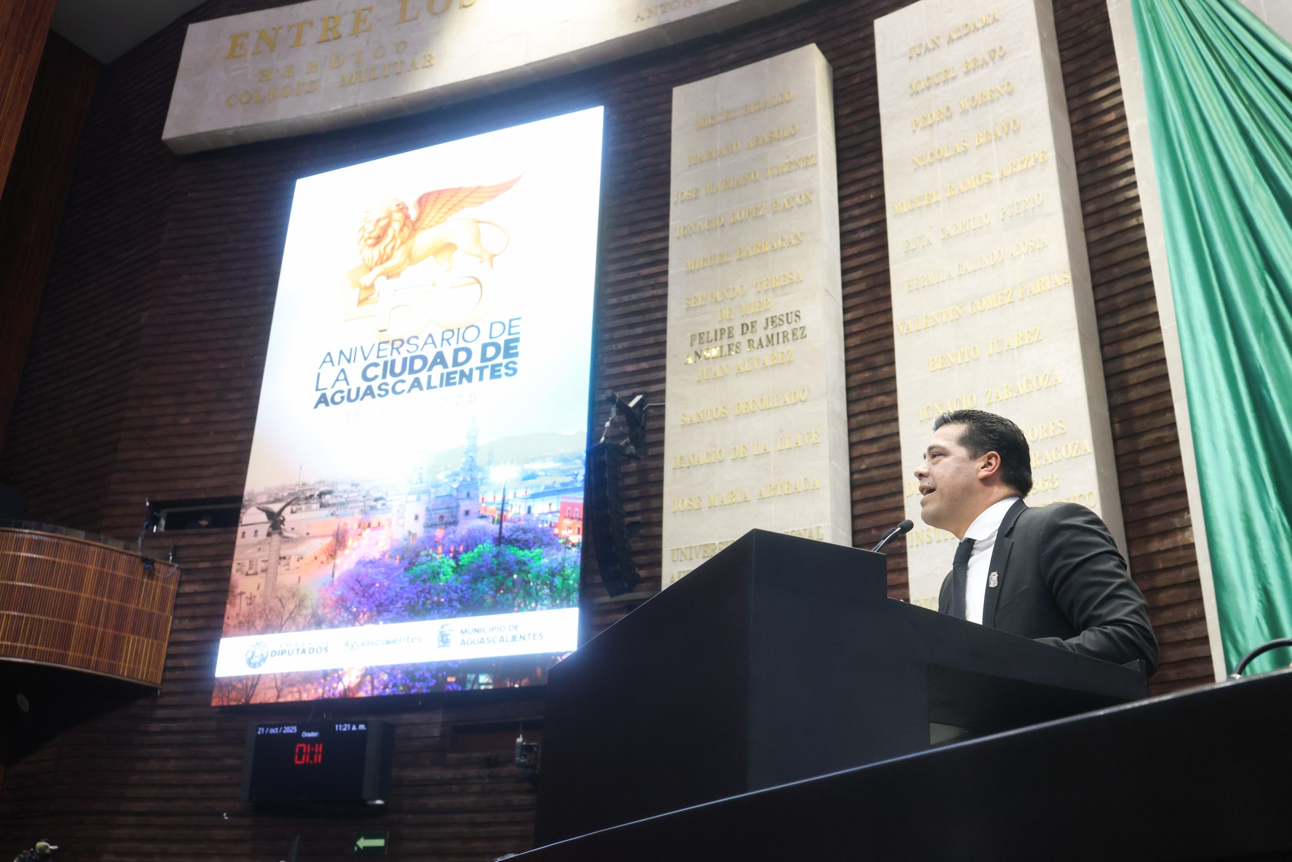 La mañana de este martes, la máxima tribuna legislativa del país fue el escenario donde se realizó un homenaje en honor al 450 Aniversario de la Fundación de la ciudad de Aguascalientes, cuna de grandes talentos como José Guadalupe Posada, Dolores Castro, Alfonso Esparza Oteo, Federico Méndez, Jesús Fructuoso Contreras, Saturnino Herrán, entre otros.