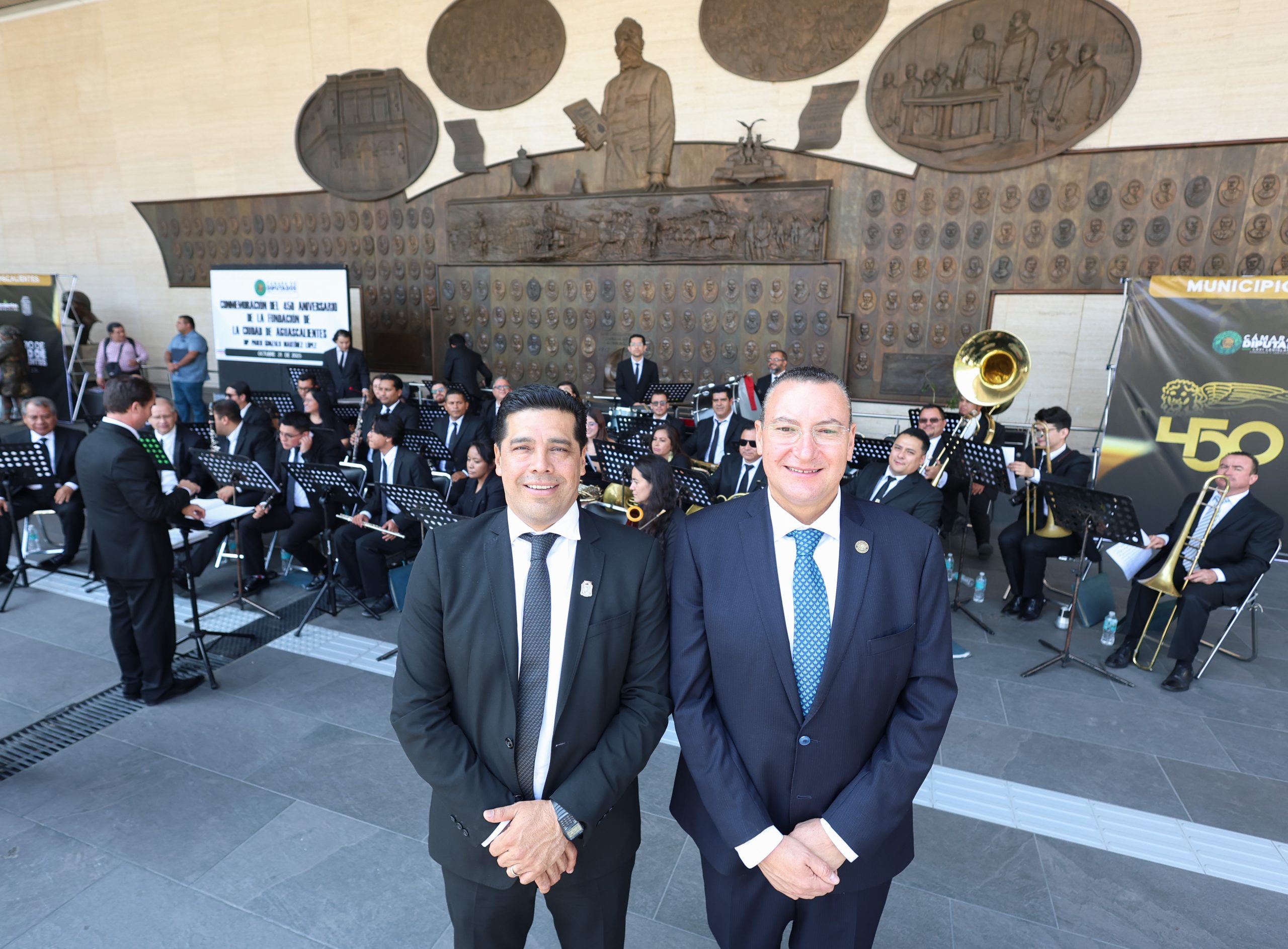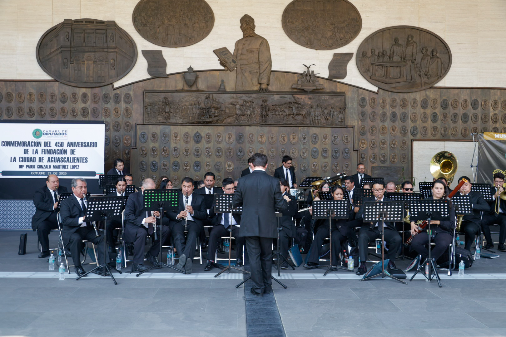 Este homenaje se vistió de gala con la presencia de la Banda Sinfónica Municipal de Aguascalientes, que entonó dentro de la sesión solemne, el Himno Aguascalientes y el Himno Nacional Mexicano.
