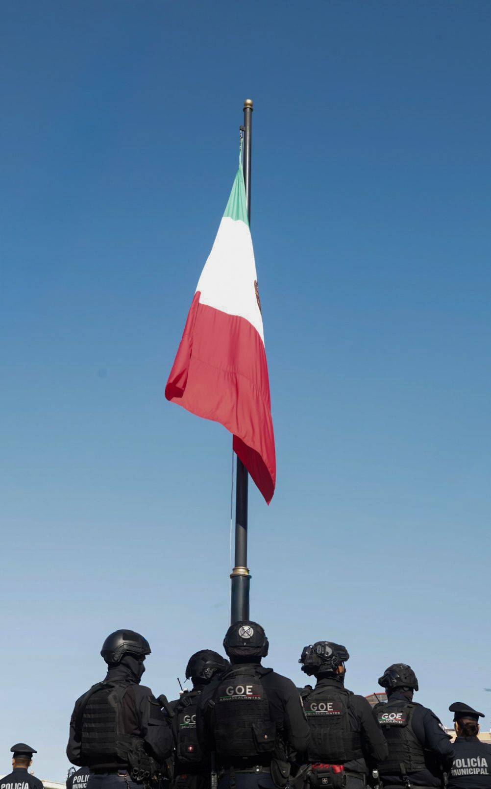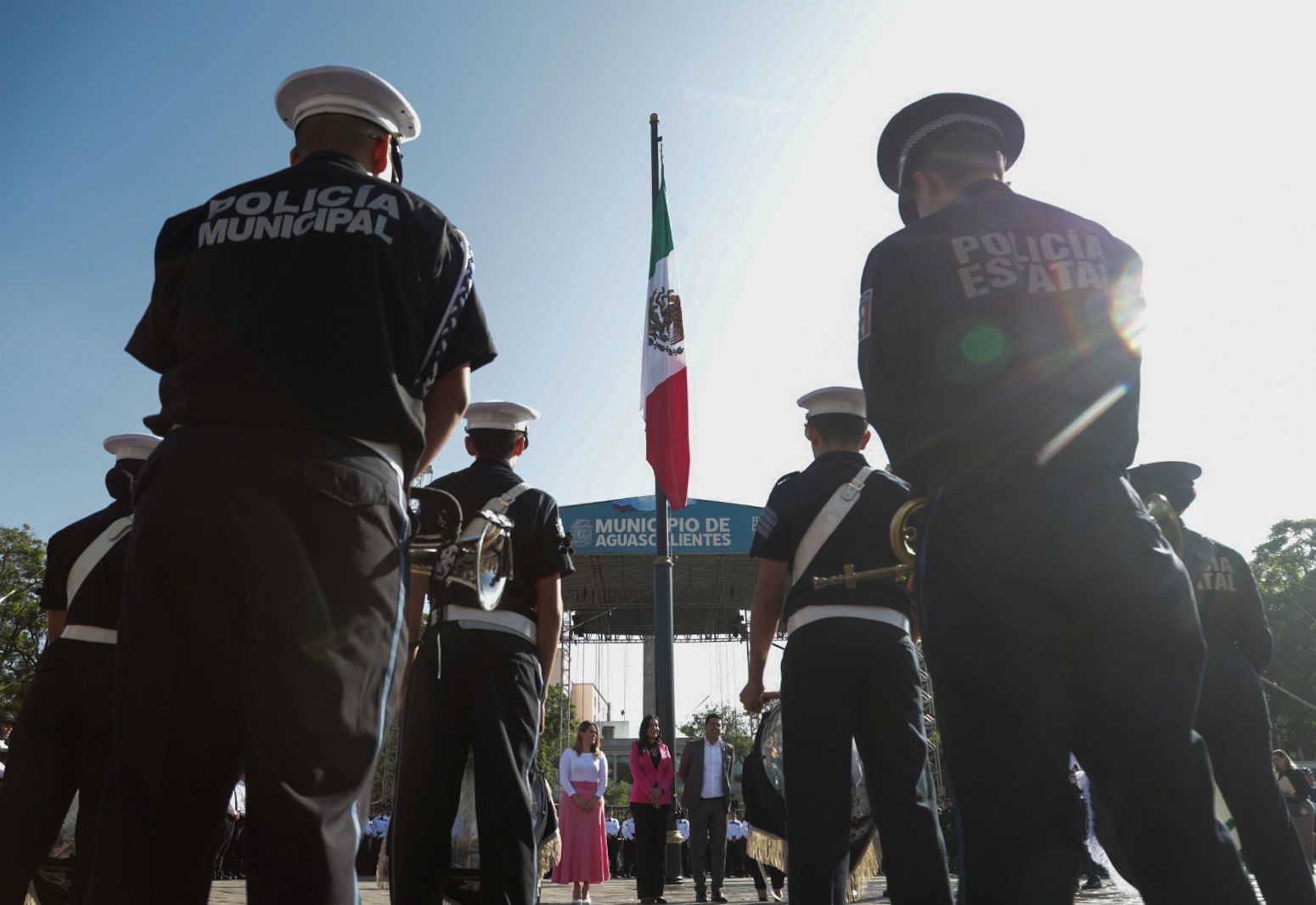Acompañado por los regidores del H. Ayuntamiento de Aguascalientes y por el titular de la Secretaría de Seguridad Pública del Municipio (SSPM), Gonzalo Pérez Zúñiga, el presidente municipal rindió honores al lábaro patrio en la Plaza Principal, para resaltar los valores cívicos y la proximidad social.