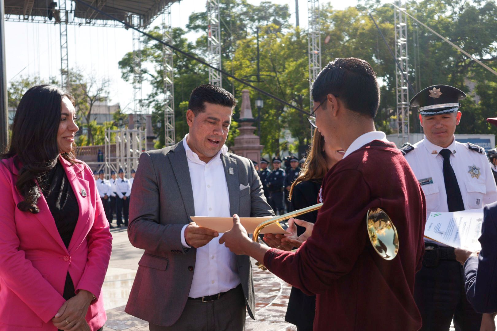 Durante el evento se entregaron reconocimientos de participación a las bandas de guerra: Leopardos, de la SSPM; Pumas, del CBTIS No. 281; Himno Nacional, de la Secundaria Técnica Número 26; Cobras, de la Secundaria Técnica Número 32 y a la banda de guerra de la Policía del Estado de Aguascalientes.