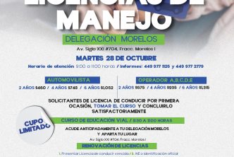 Este próximo martes 28 de octubre se llevará a cabo una nueva jornada de renovación de licencias de manejo en el Fraccionamiento Morelos I como parte de la estrategia del Municipio de Aguascalientes y Gobierno del Estado para que los ciudadanos puedan realizar trámites cerca de su domicilio o lugar de trabajo.
