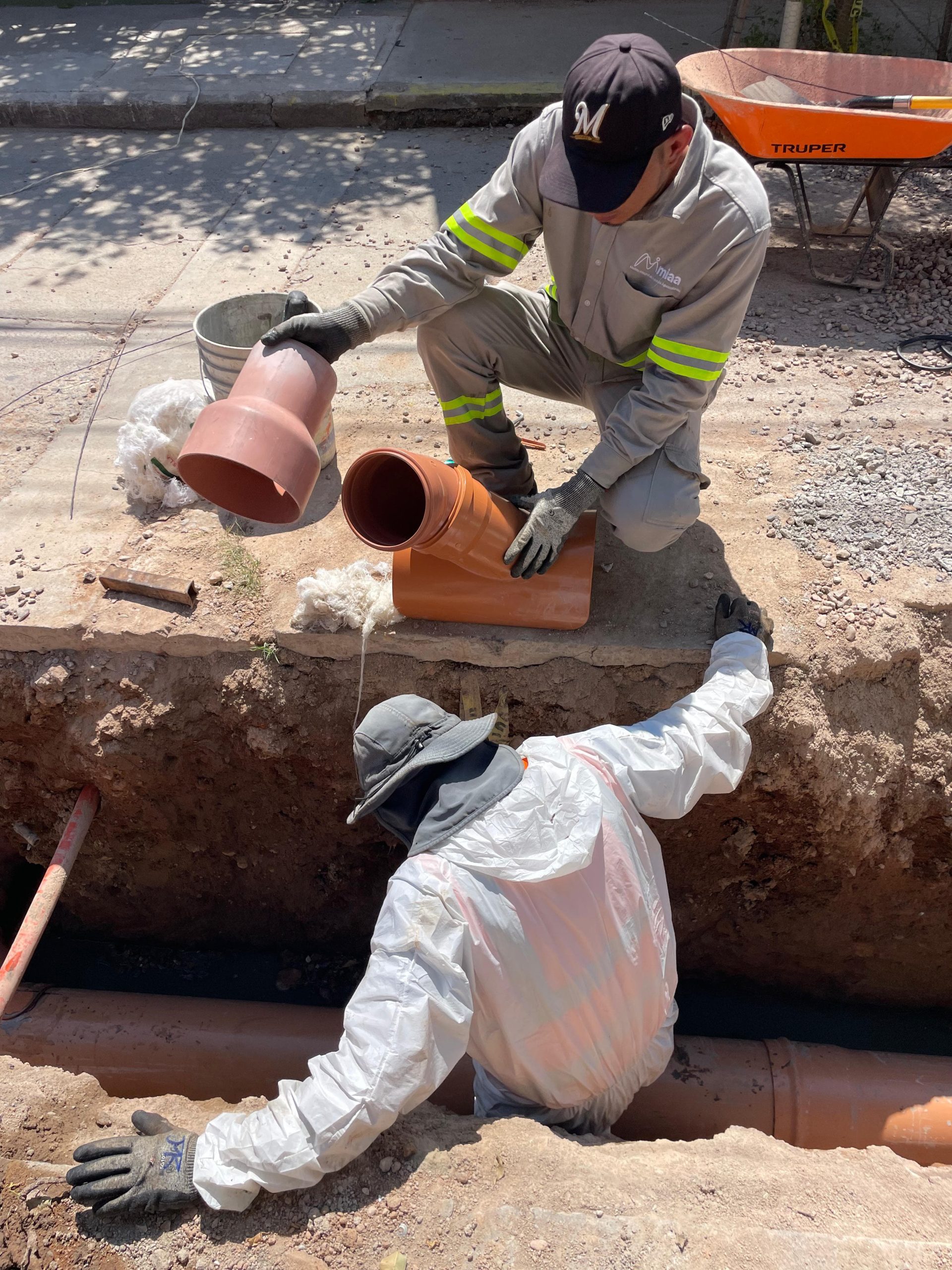- Con el fin de sustituir la tubería del drenaje y mejorar el servicio, MIAA trabaja en la obra de rehabilitación de alcantarillado sanitario en la calle Burgos de la colonia España