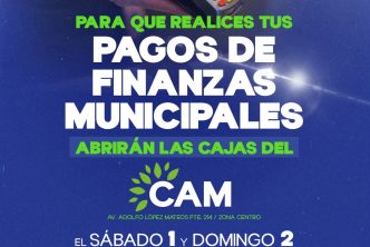 El Municipio de Aguascalientes, a través de la Secretaría de Finanzas, anuncio la apertura de las cajas del Centro de Atención Municipal (CAM) los próximos días sábado 1 y domingo 2 de noviembre, para recibir los pagos de servicios municipales como el predial.
