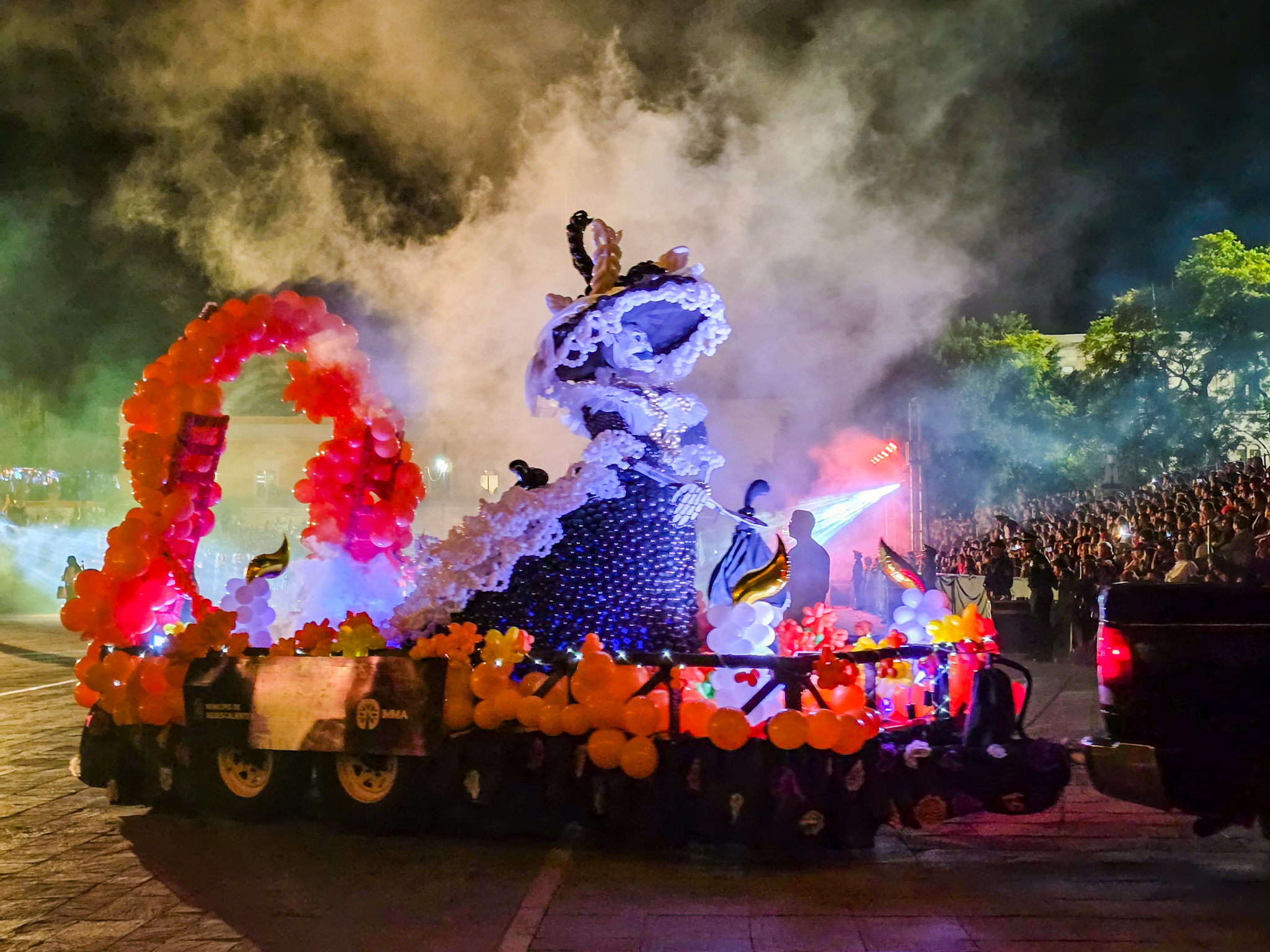 El Instituto Municipal de la Mujer de Aguascalientes (IMMA) participó en el tradicional Desfile de Calaveras 2025 con una catrina monumental elaborada con globos, que representó un símbolo de fortaleza, unión y alegría, cualidades que distinguen a las mujeres de Aguascalientes.