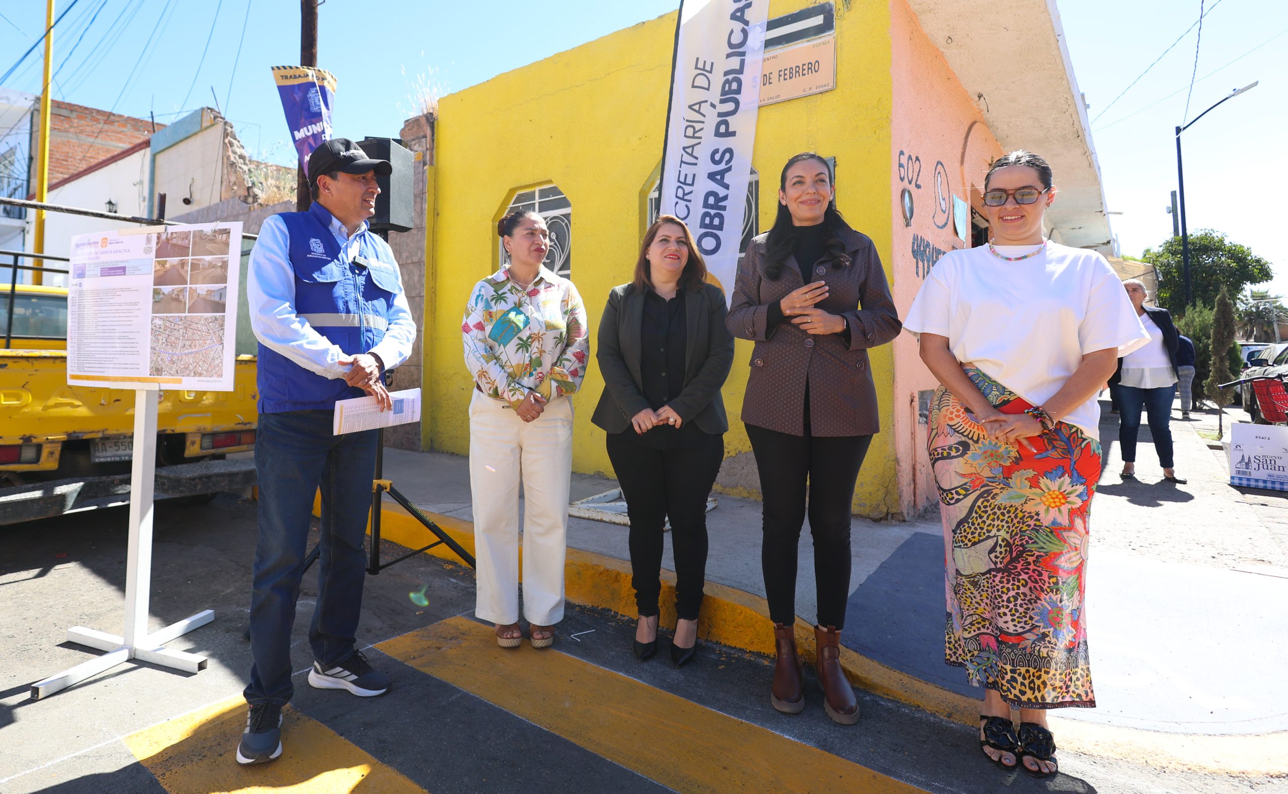 El Municipio de Aguascalientes llevó a cabo la entrega de la rehabilitación vial de la calle 5 de Febrero, en el tramo comprendido entre la calle Cosío Sur y Poder Legislativo, en el fraccionamiento El Llanito.