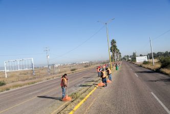 Como parte de las acciones de mantenimiento y conservación de espacios públicos, la mañana de este viernes, el presidente municipal Leo Montañez, encabezó un mega operativo de desmalezado y limpieza en el boulevard al aeropuerto, en la parte sur de la ciudad.