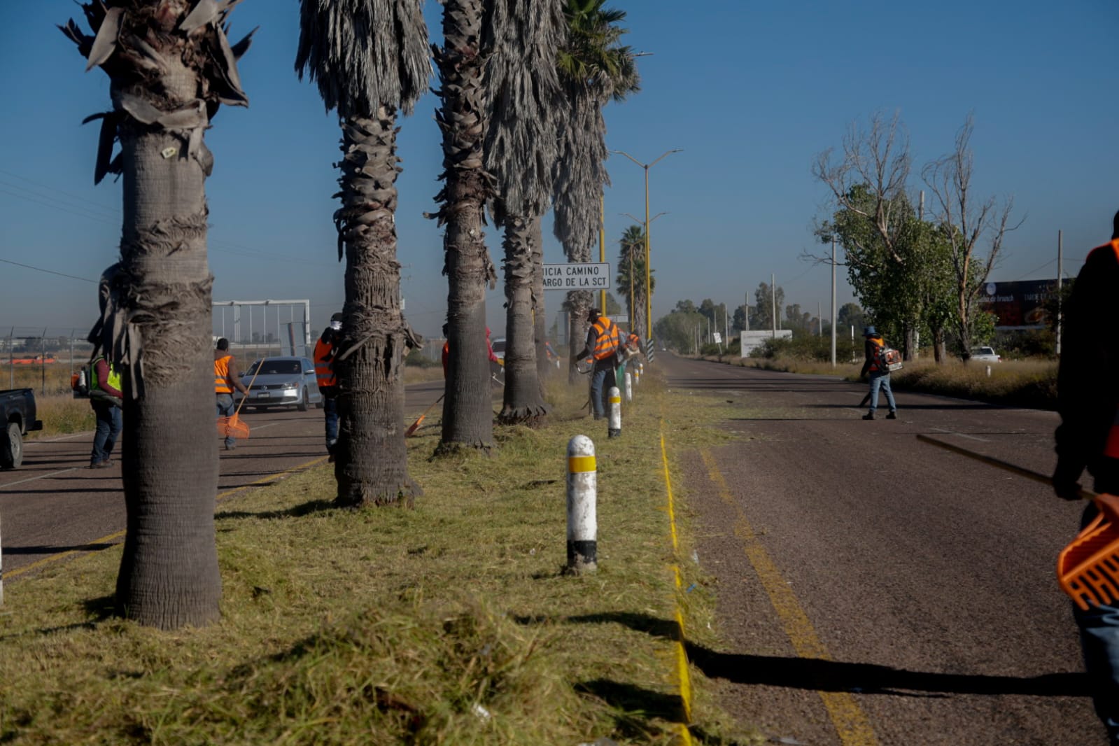 Como parte de las acciones de mantenimiento y conservación de espacios públicos, la mañana de este viernes, el presidente municipal Leo Montañez, encabezó un mega operativo de desmalezado y limpieza en el boulevard al aeropuerto, en la parte sur de la ciudad.