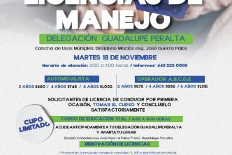 Para más información, la Delegación Guadalupe Peralta pone a disposición de la ciudadanía el número de teléfono: 449 222 00 09 al que podrán comunicarse en un horario de lunes a viernes de las 8:00 a las 15:30 horas.