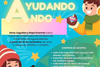 La Secretaría de Desarrollo Social del Municipio de Aguascalientes lanza la campaña “Ayudando Ando, donaciones que llenan corazones” que consiste en donar juguetes nuevos y/o ropa invernal en buen estado, en beneficio de las familias que más lo necesitan.