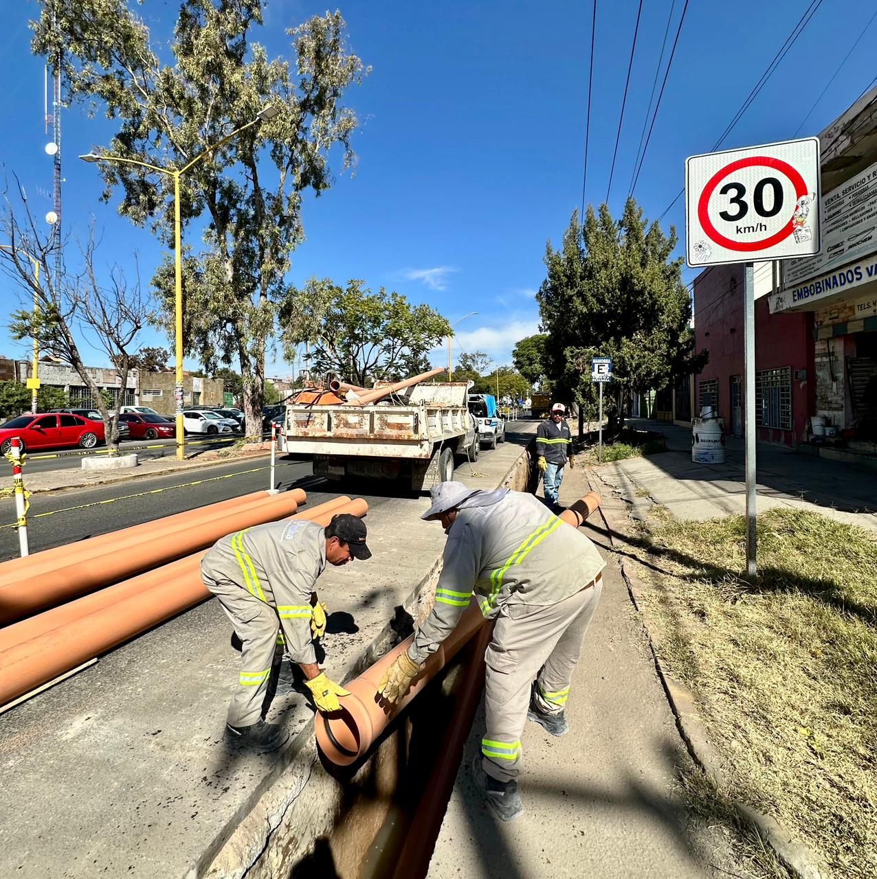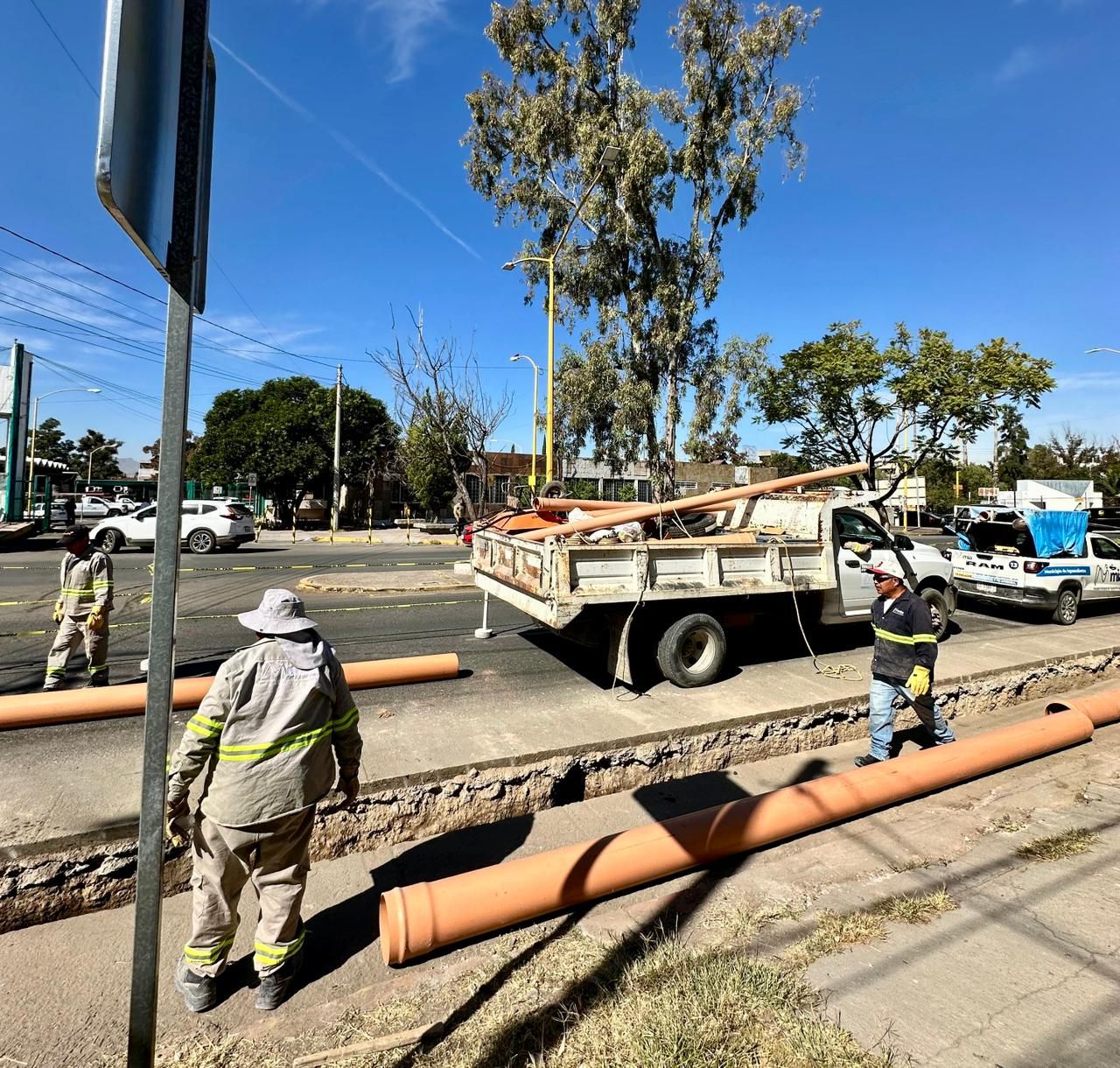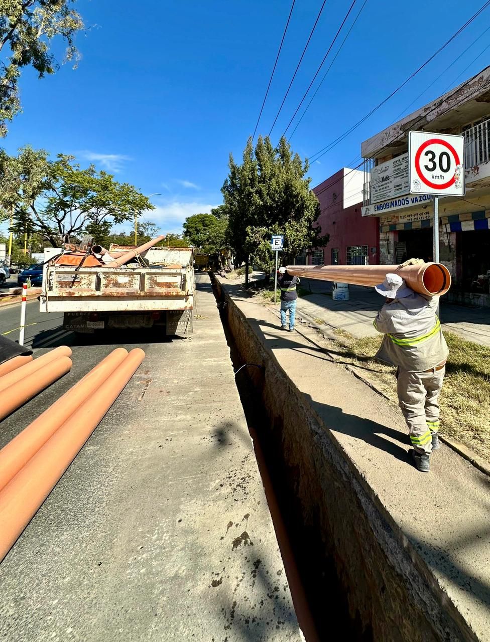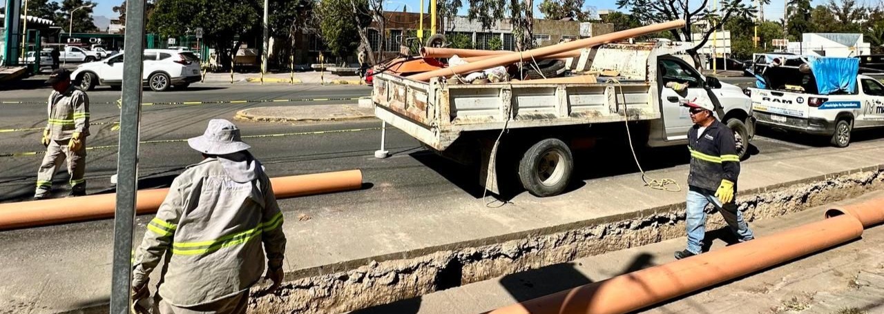El Modelo Integral de Aguas de Aguascalientes (MIAA) trabaja en el cambio de tubería de alcantarillado sanitario en la av. Independencia entre la calle Manuel Ávila Camacho y Alfredo Lewis, en la colonia Industrial, para prevenir fugas y evitar riesgos sanitarios a los habitantes.