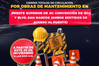 El Municipio de Aguascalientes, a través de la Secretaría de Obras Públicas Municipales, realizará trabajos de mantenimiento al puente superior ubicado en la av. Convención de 1914 Poniente en el cruce con el Blvd. San Marcos, por lo que se realizará el cierre total en ambos sentidos a partir de las 09:00 horas de este jueves 20 de noviembre.