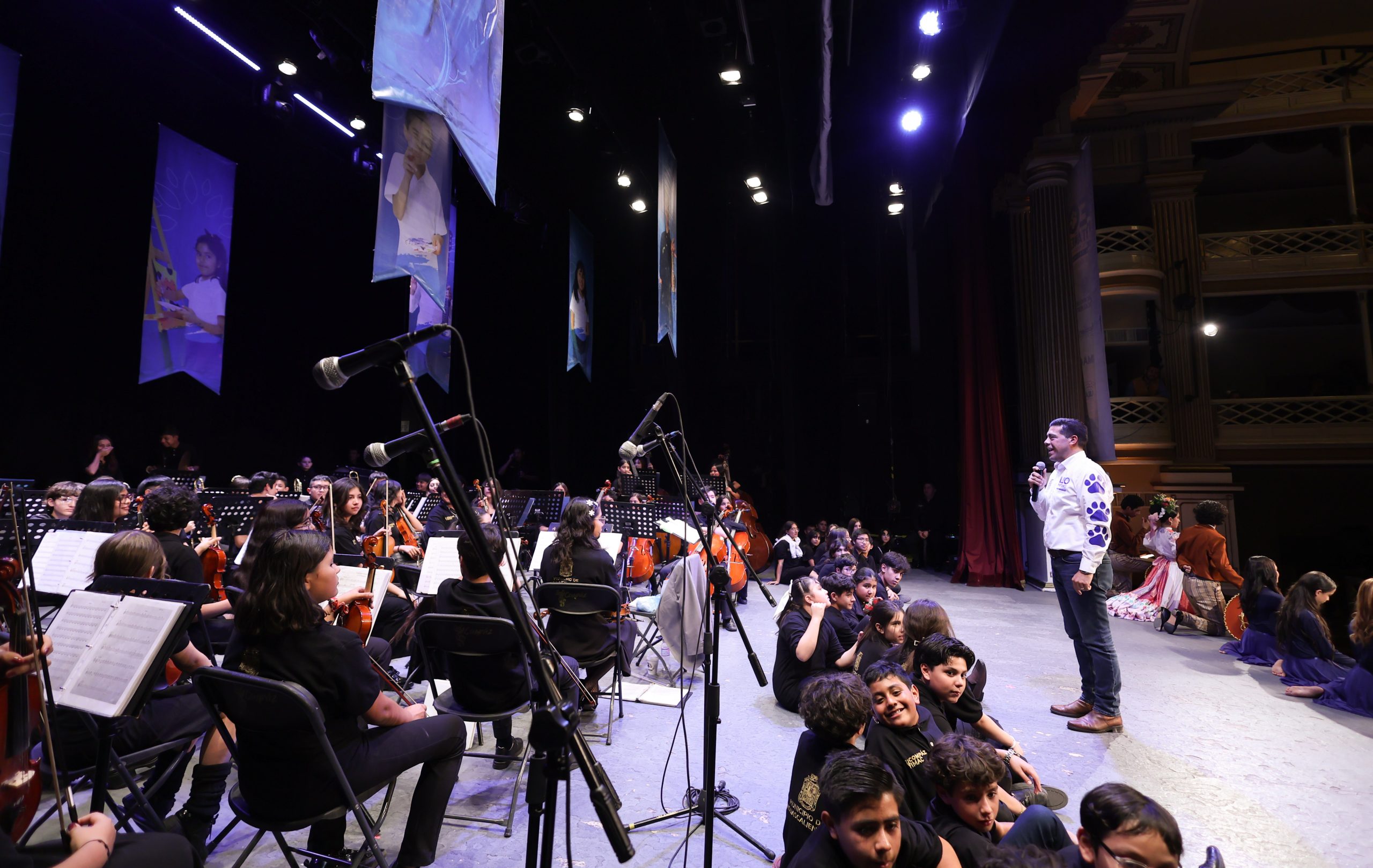 Rodeado de alumnos de los diversos talleres y grupos artísticos, sostuvo que, escucharlos y verlos es un faro de luz para el futuro de nuestra ciudad y nuestra patria. Su esfuerzo es motivo de orgullo y será la motivación para aquellos niños que buscan un medio para expresar sus inquietudes de forma creativa, expresó emotivo el presidente municipal.