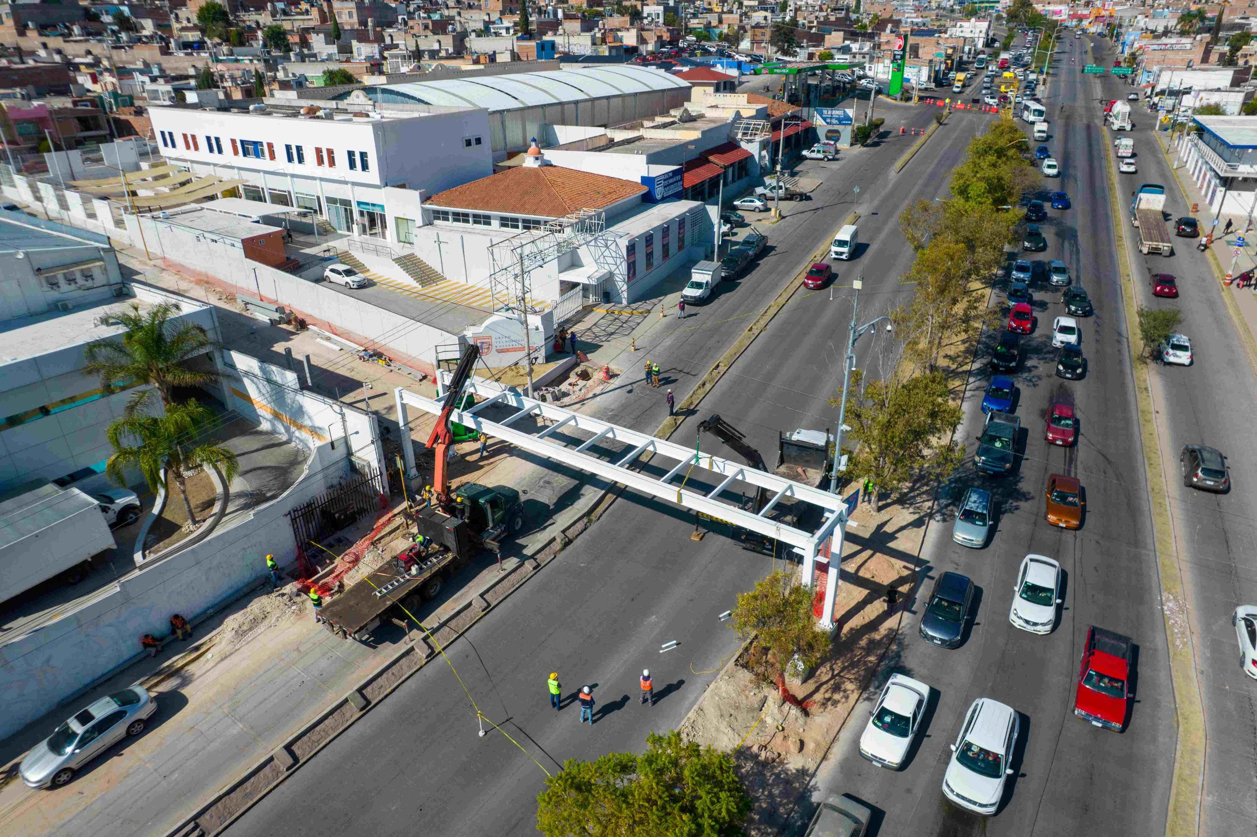 Asimismo, y como parte de las acciones de seguridad peatonal, inició la construcción del puente peatonal en Av. Siglo XXI Oriente, a la altura de la calle Prosperidad en el fraccionamiento Municipio Libre (entre el Tecnológico Universitario y Clínica 9 del IMSS), en donde este jueves se comenzó a montar la estructura de acero.