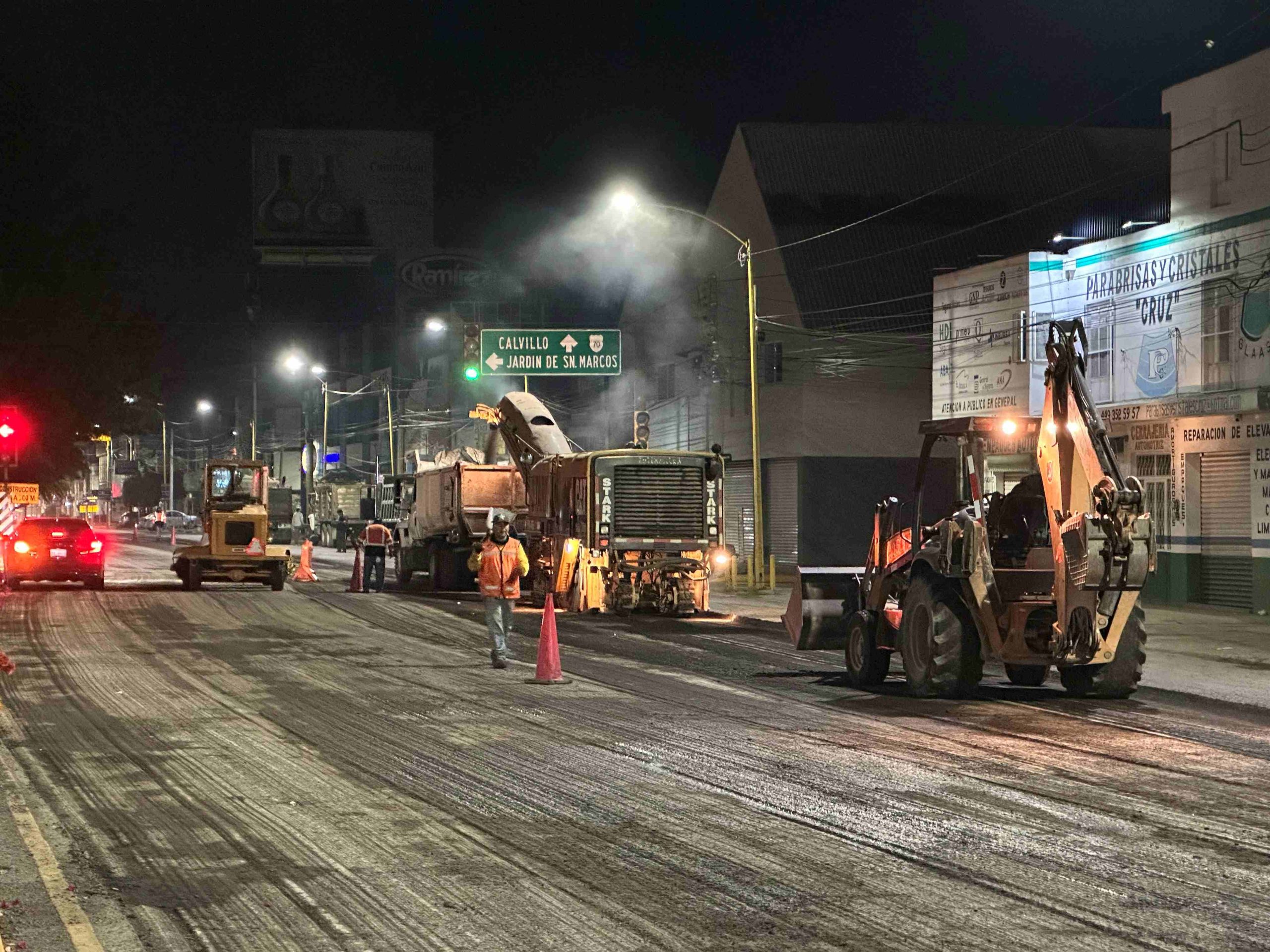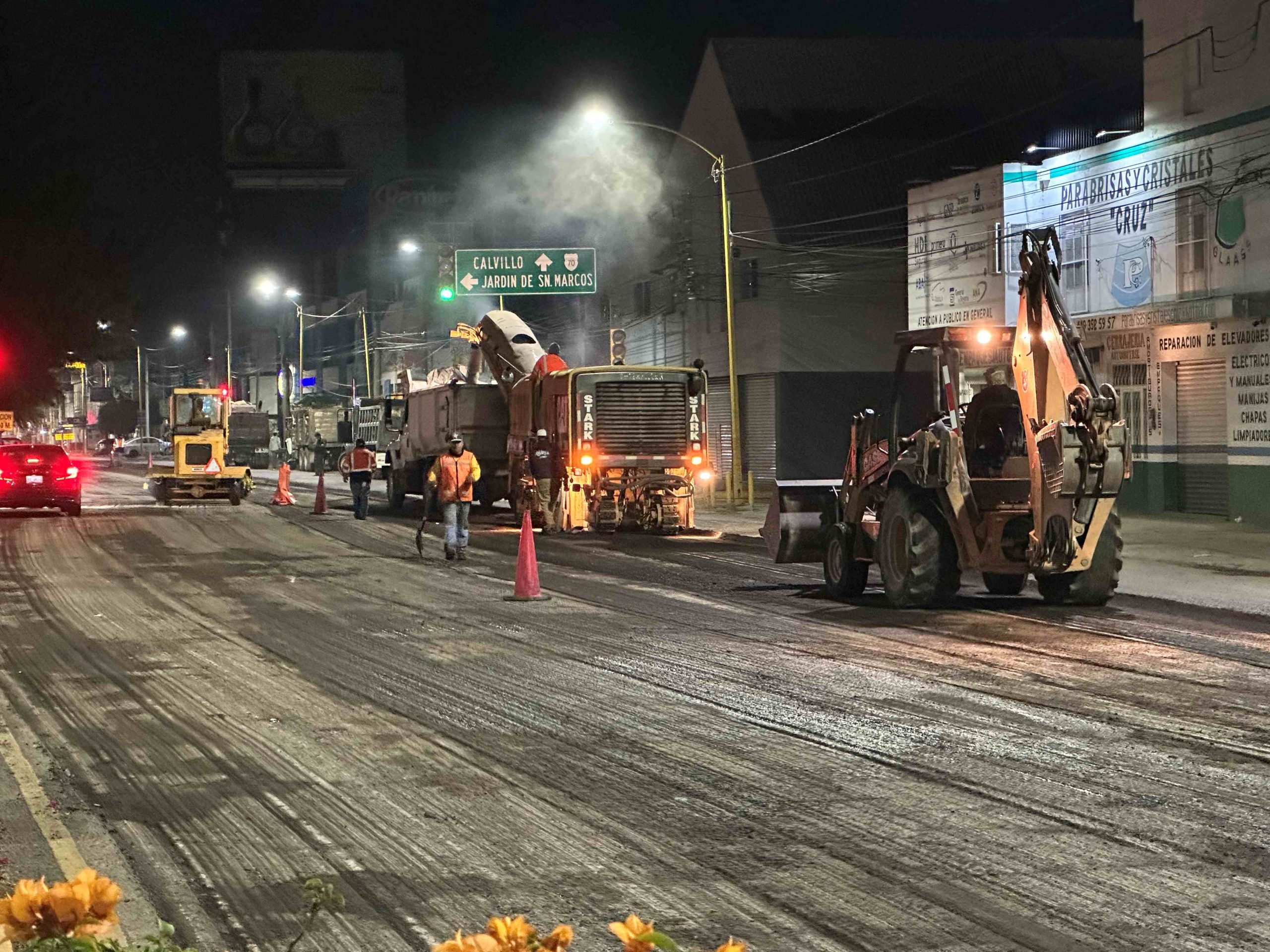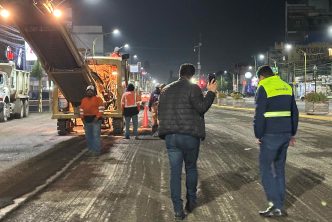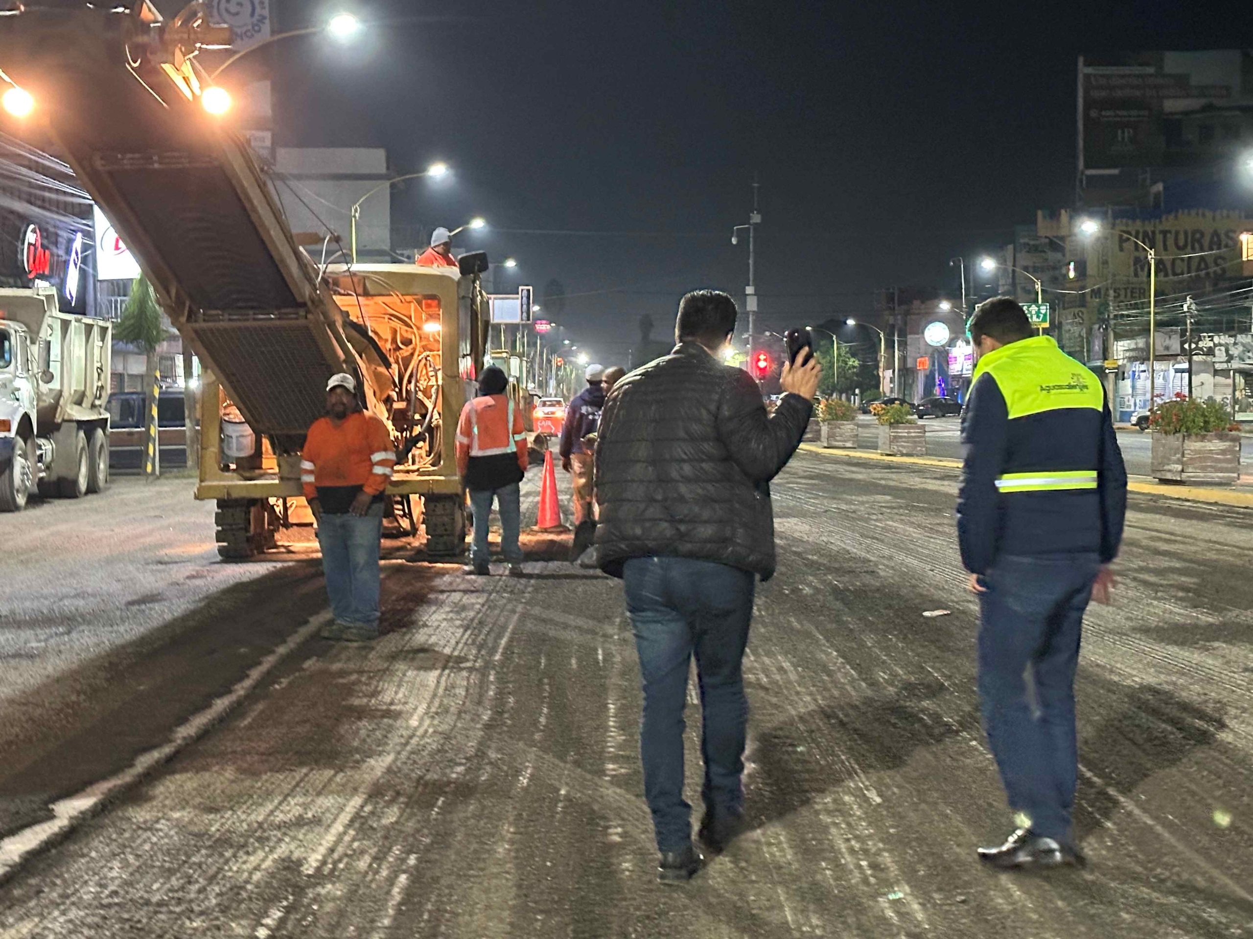 Leo Montañez realizó una supervisión nocturna de obras de reencarpetamiento que se llevan a cabo a través de la Secretaría de Obras Públicas Municipales (SOPMA), en donde se realizan trabajos de mantenimiento y conservación para mejorar la movilidad.