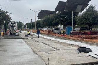 El Municipio de Aguascalientes, a través de la Secretaría de Obras Públicas da seguimiento a los trabajos de construcción de pavimento hidráulico sobre la calzada oriente de la avenida Poliducto, en el fraccionamiento José Guadalupe Peralta Gámez.