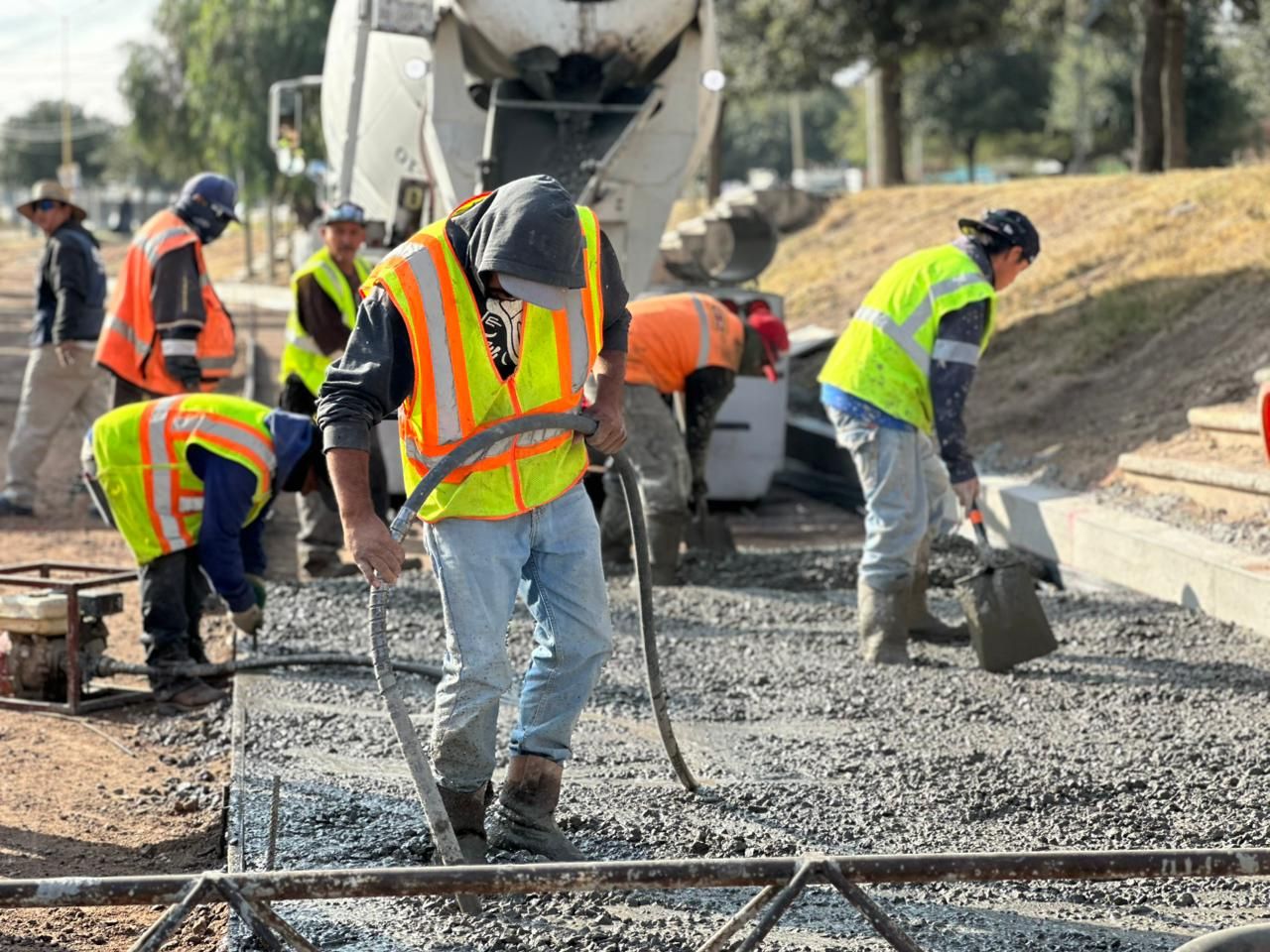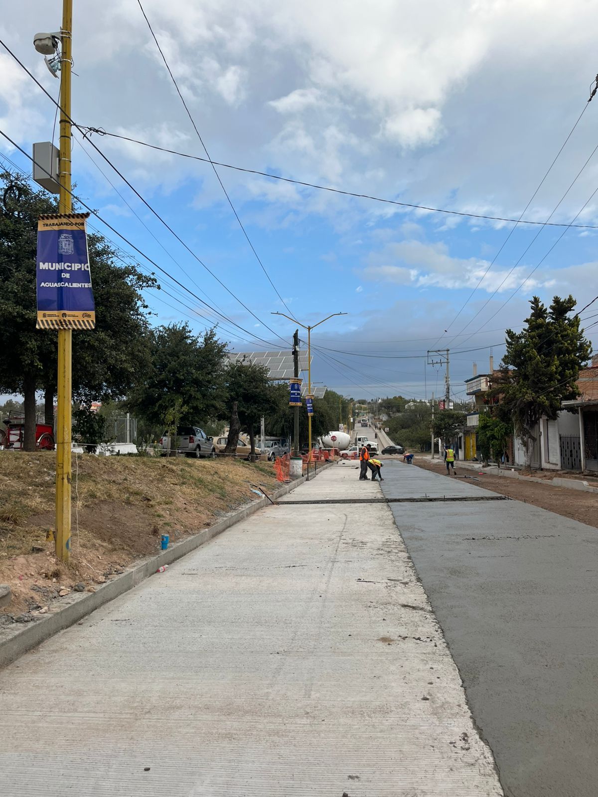El Municipio de Aguascalientes, a través de la Secretaría de Obras Públicas da seguimiento a los trabajos de construcción de pavimento hidráulico sobre la calzada oriente de la avenida Poliducto, en el fraccionamiento José Guadalupe Peralta Gámez.