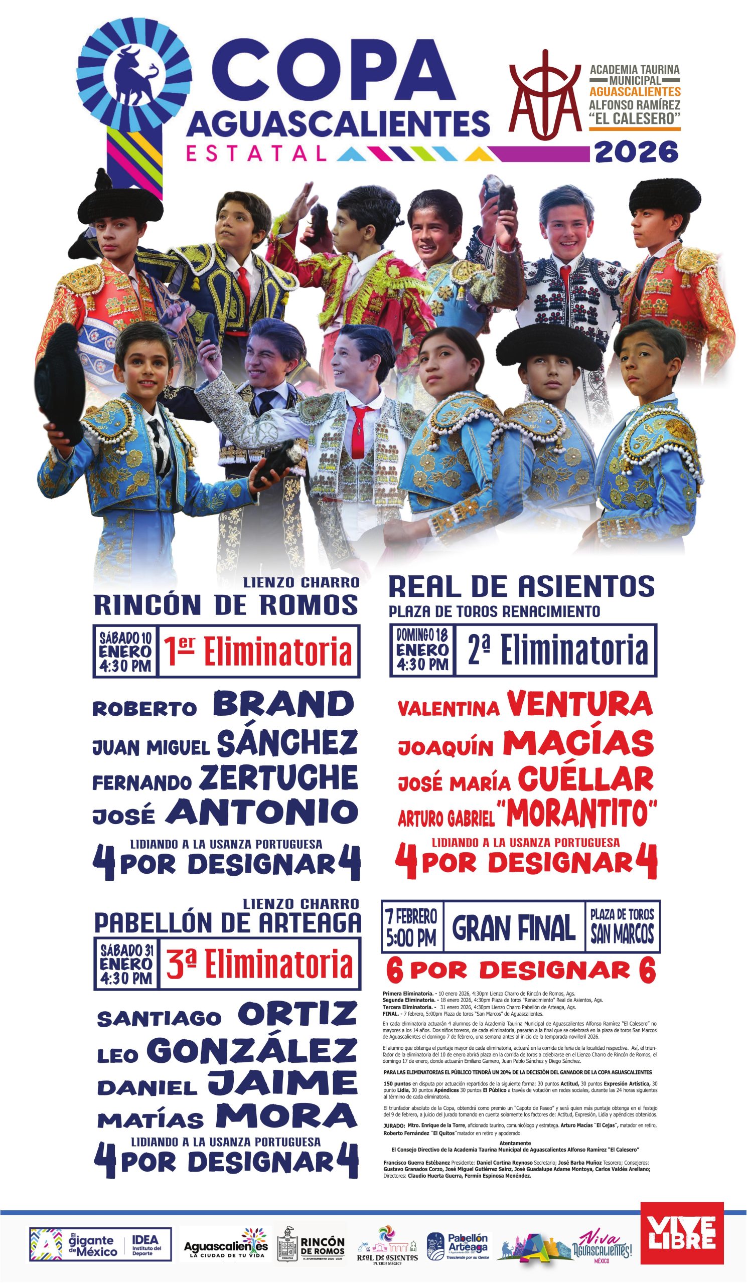 El Municipio de Aguascalientes a través de la Academia Taurina Municipal Alfonso Ramírez “El Calesero”, presentó la tarde de este viernes 19 de diciembre el cartel taurino para eliminatorias y Gran Final de la Copa Aguascalientes 2026, con la participación de doce jóvenes promesas.