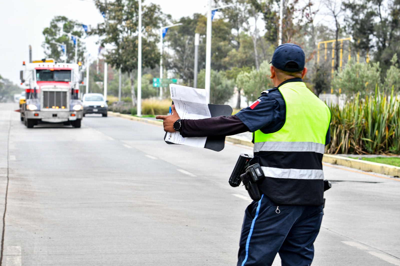 Como parte de las acciones para fortalecer la seguridad vial, la Secretaría de Seguridad Pública Municipal de Aguascalientes, a través de la Dirección de Movilidad, intensifica el Operativo de Transporte Pesado, con el propósito de supervisar la circulación adecuada de las unidades de carga y que se respete la normativa de tránsito.