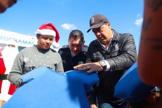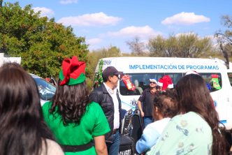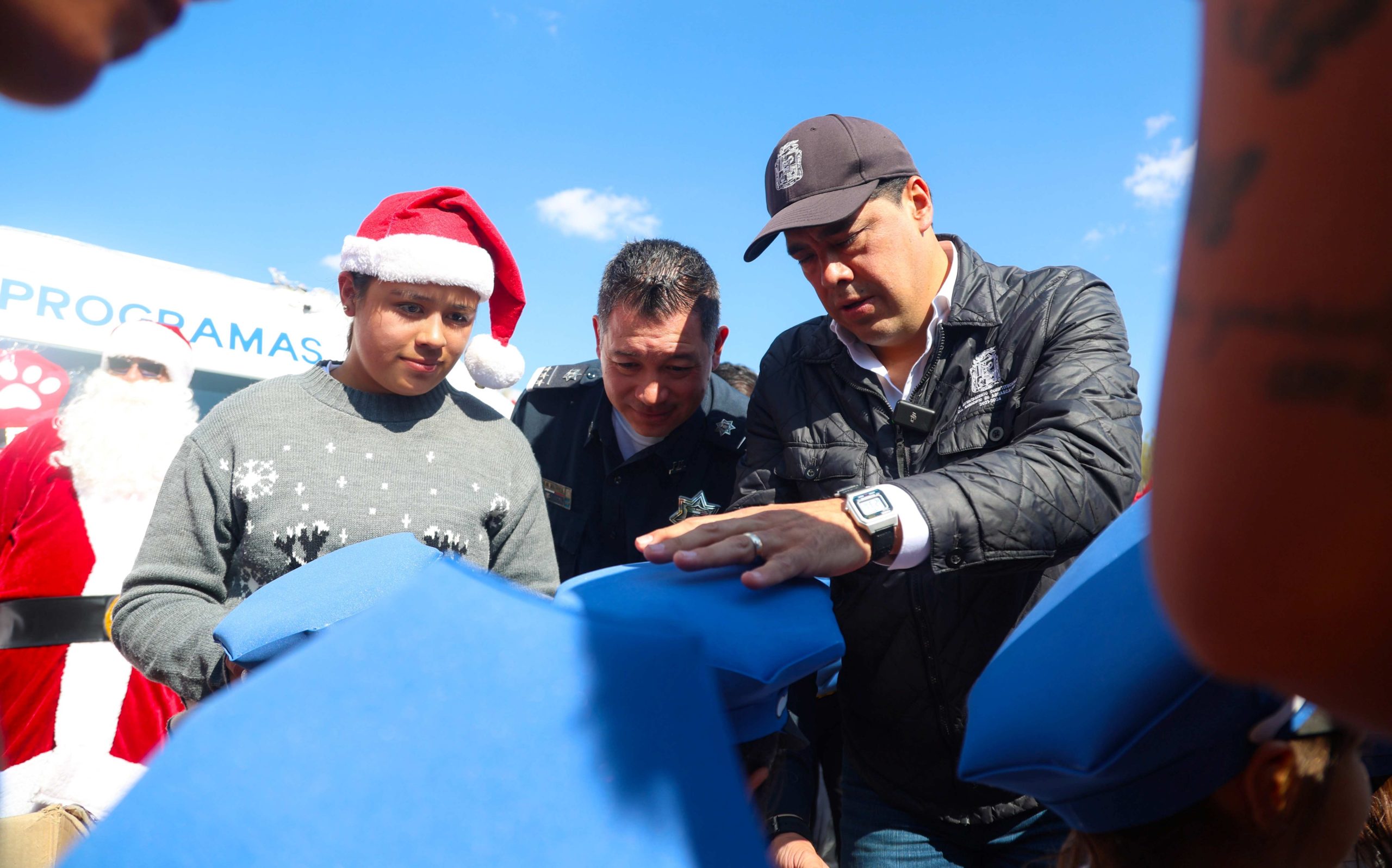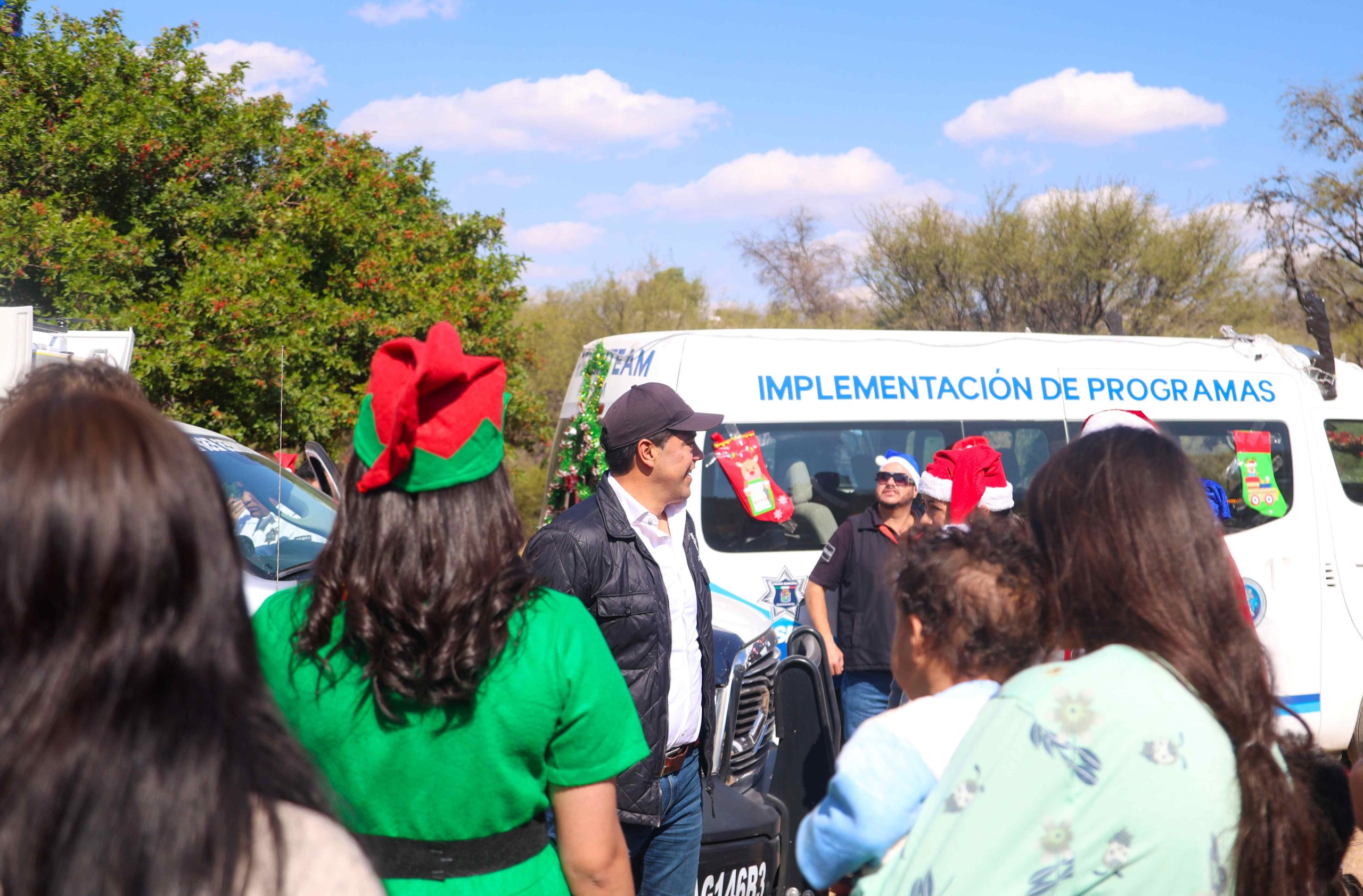 Para conmemorar esta fecha, en conjunto con Policías Municipales, Leo Montañez visitó comunidades rurales en donde entregó juguetes a niñas y niños, donados por integrantes de la Secretaría de Seguridad Pública Municipal, y reiteró que se redoblarán esfuerzos para fortalecer la seguridad y paz social.