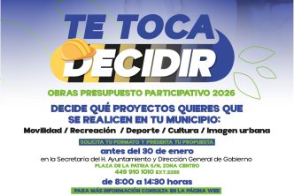 El Municipio de Aguascalientes presentó la convocatoria al presupuesto participativo “Te Toca Decidir” 2026, a través del cual vecinas y vecinos de diferentes partes de la ciudad propondrán proyectos de obra en parques, canchas y otros espacios públicos, para mejorar el entorno urbano y social en sus colonias, fraccionamientos y comunidades.