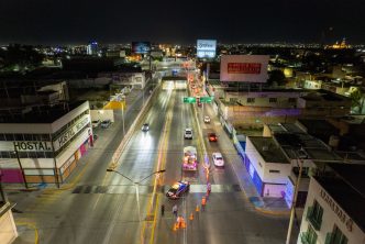 El presidente municipal, Leo Montañez supervisó el operativo nocturno de rehabilitación de pintura vial en el paso a desnivel de Avenida López Mateos a la altura de Expo Plaza, que forma parte de los trabajos de mantenimiento integral de vialidades y que se traduce en mayor seguridad de conductores y una mejor imagen urbana.