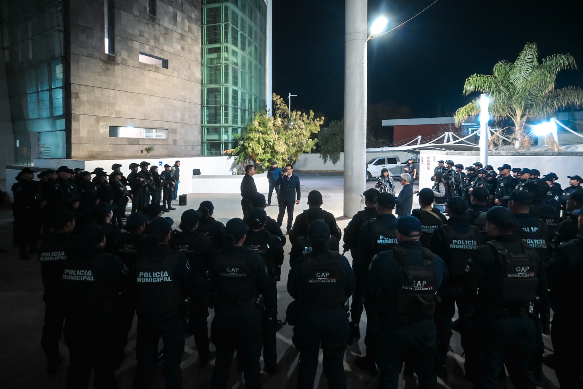 El presidente municipal, Leo Montañez, encabezó el pase de lista del de Grupo Anti Pandillas, Grupo de Operaciones Especiales y K9 conformados por ochenta elementos y tres mandos, encargados de recorrer calles, fraccionamientos, colonias y comunidades rurales, con el objetivo de salvaguardar la integridad de los ciudadanos.