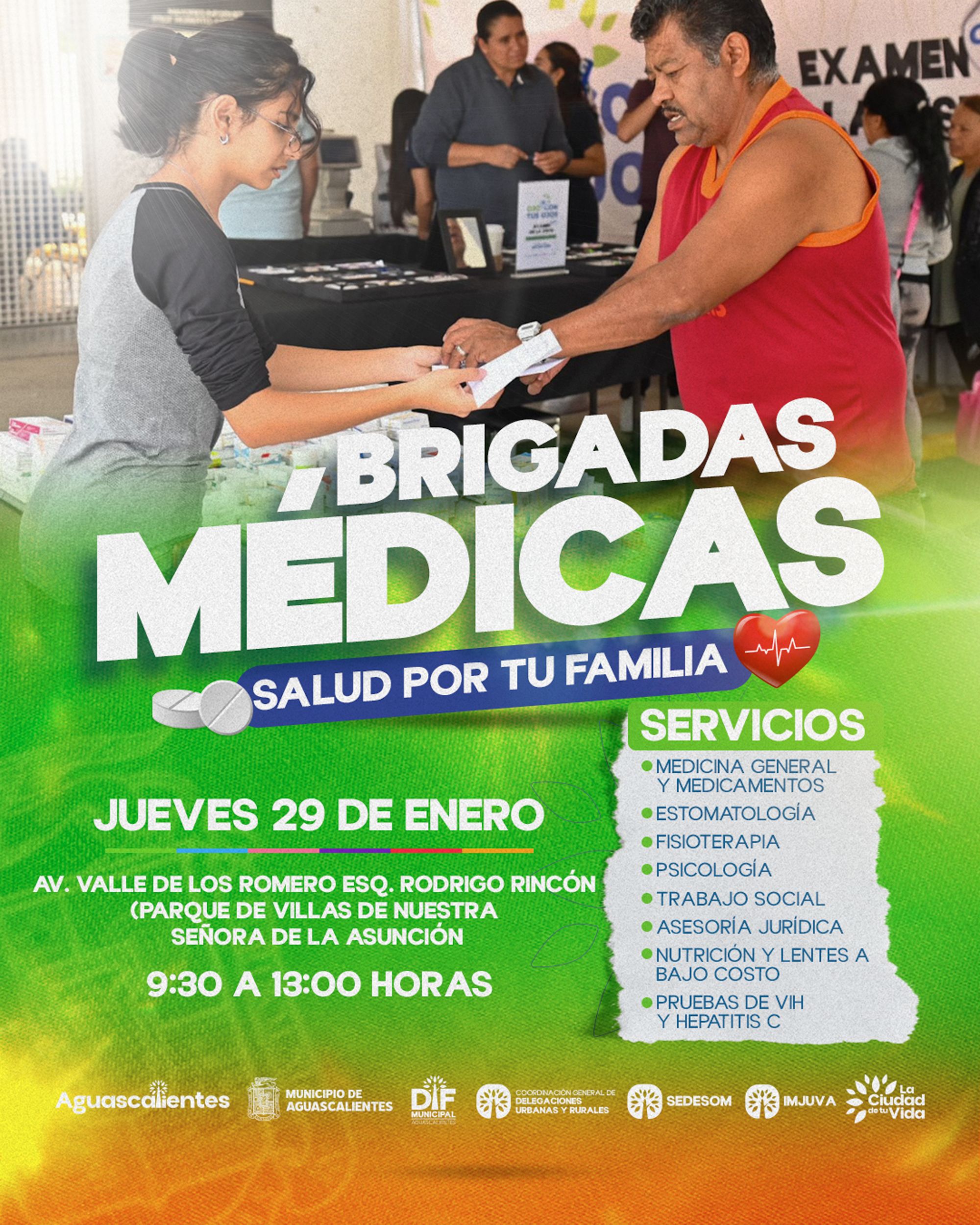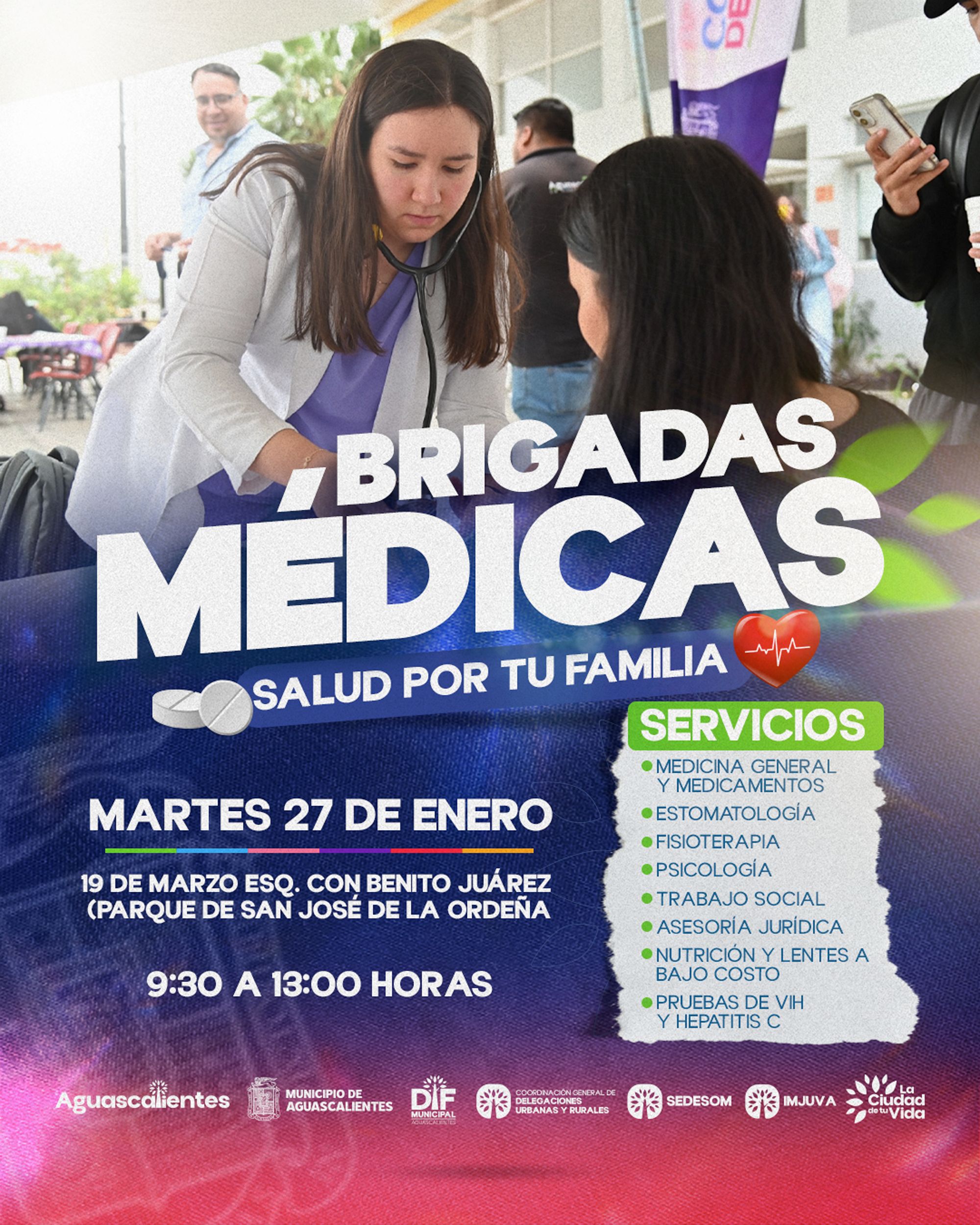 Con el objetivo de acercar servicios de salud en beneficio de las familias, el DIF Municipal de Aguascalientes llevará a cabo brigadas médicas gratuitas esta semana en distintos puntos de la ciudad.