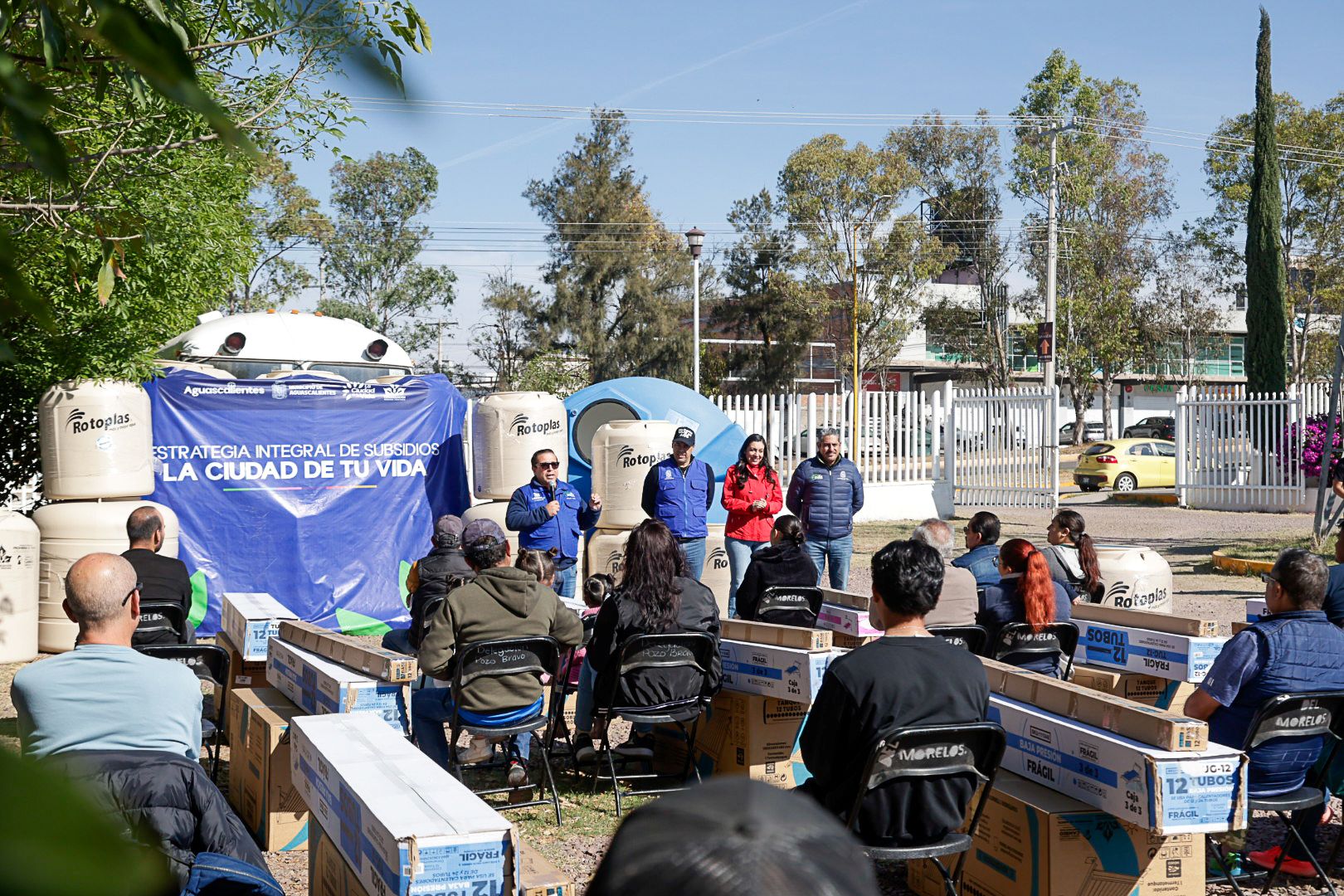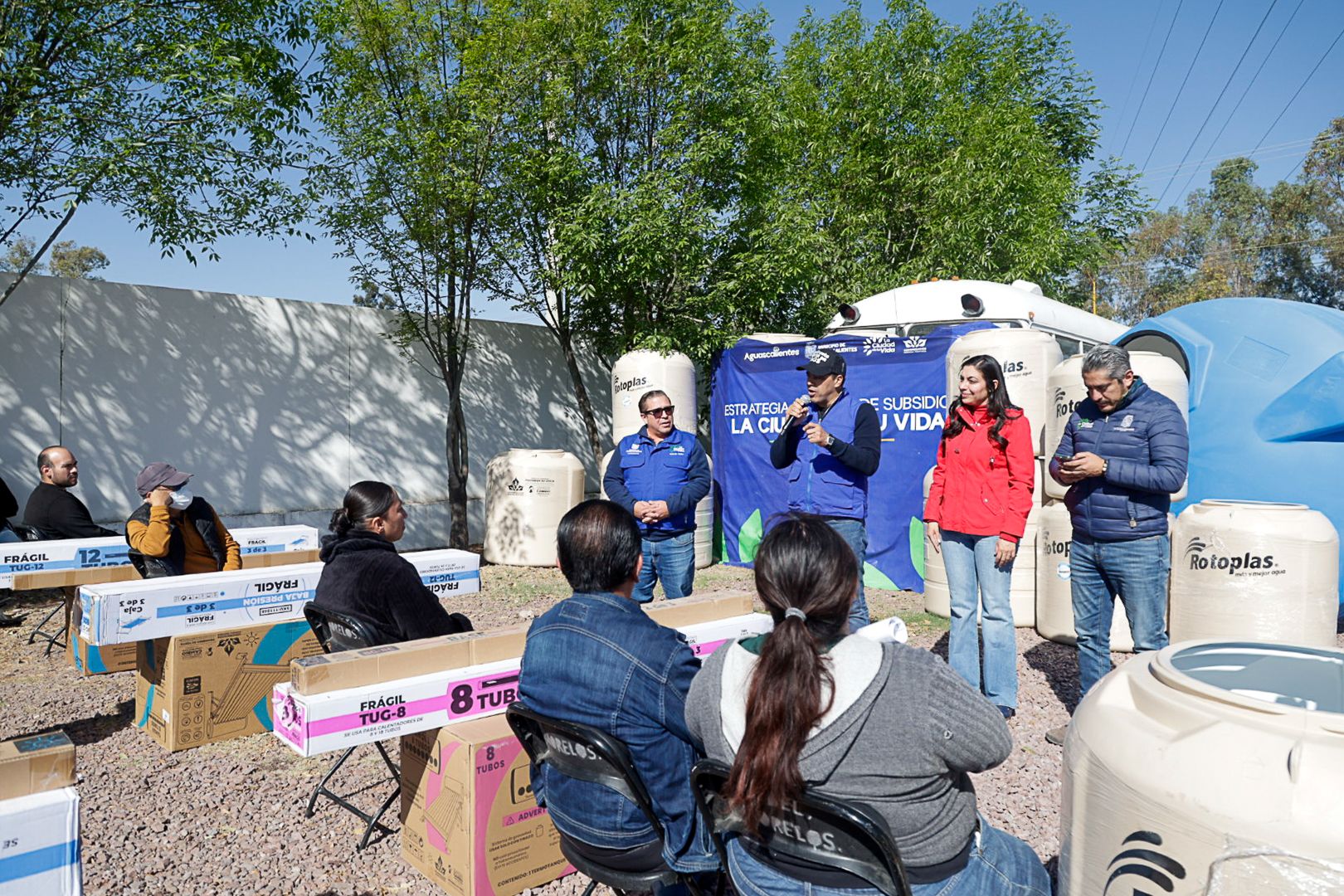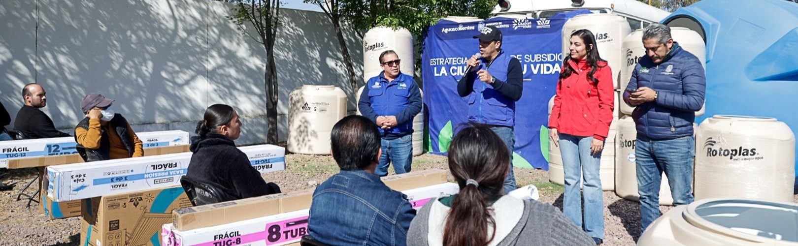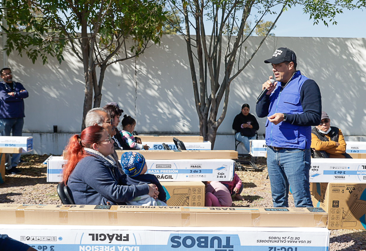 El presidente municipal, Leo Montañez entregó a través de la estrategia integral de subsidios «La Ciudad de tu Vida» conjunta con la Congregación Mariana Trinitaria, tinacos, cisternas y calentadores solares, que ayudan a las familias de Aguascalientes a contar con viviendas mejor equipadas.