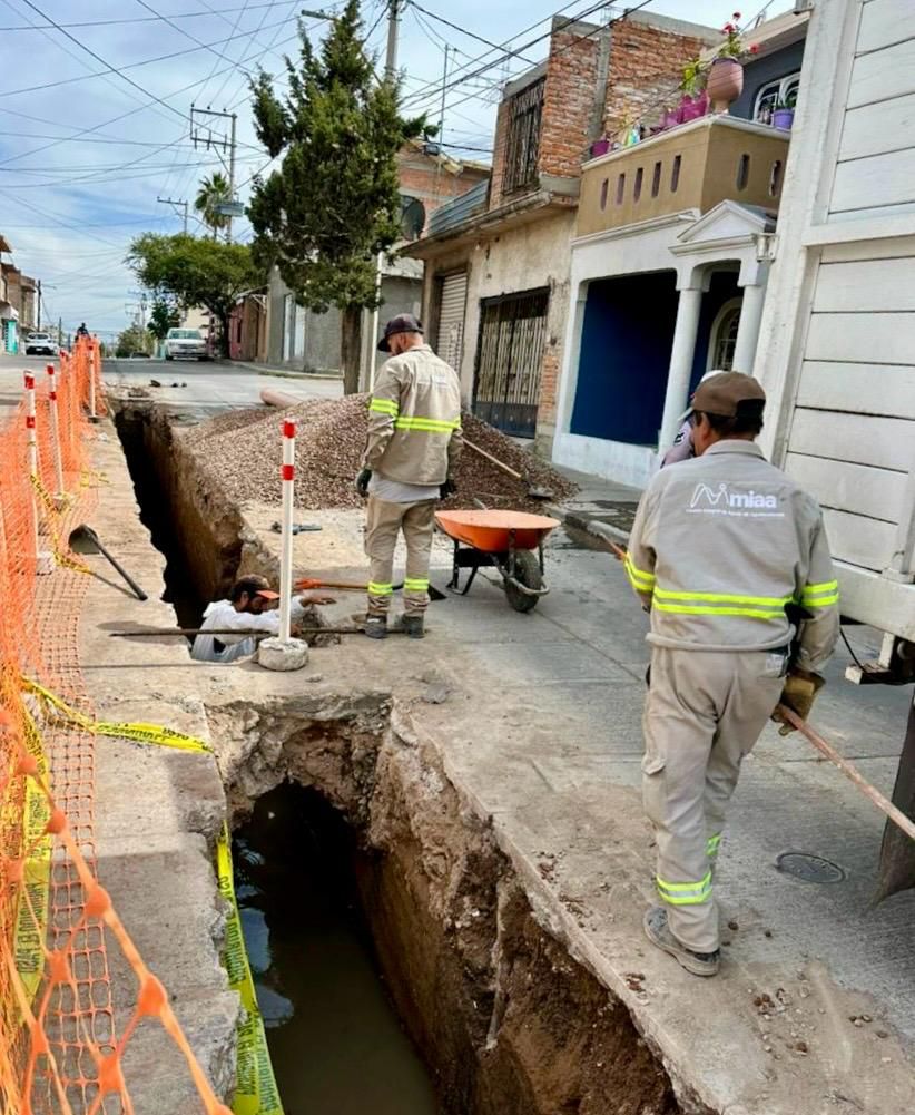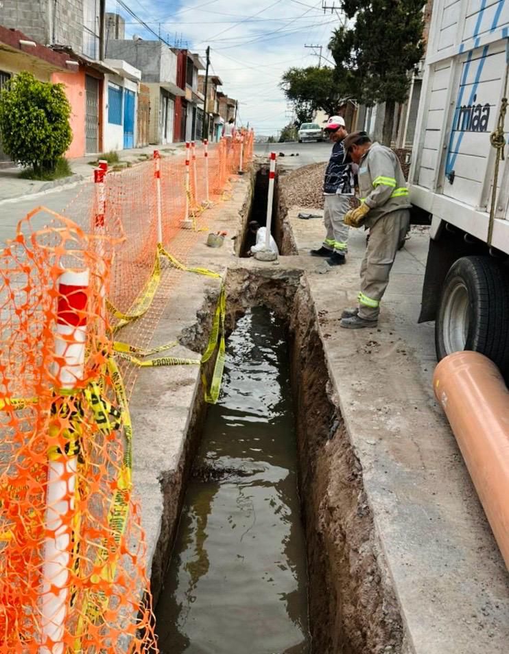 El Modelo Integral de Aguas de Aguascalientes (MIAA) rehabilita la red sanitaria en la calle Ing. Manuel García Martínez, entre Claudia González y Blas E. Romo, en el fraccionamiento Nazario Ortiz Garza.