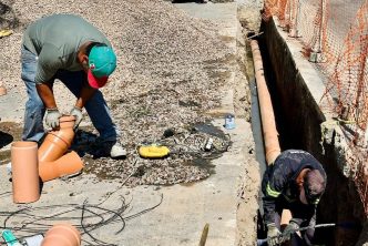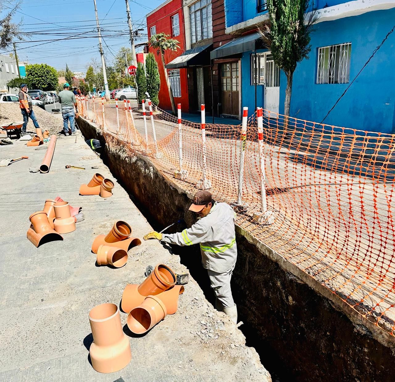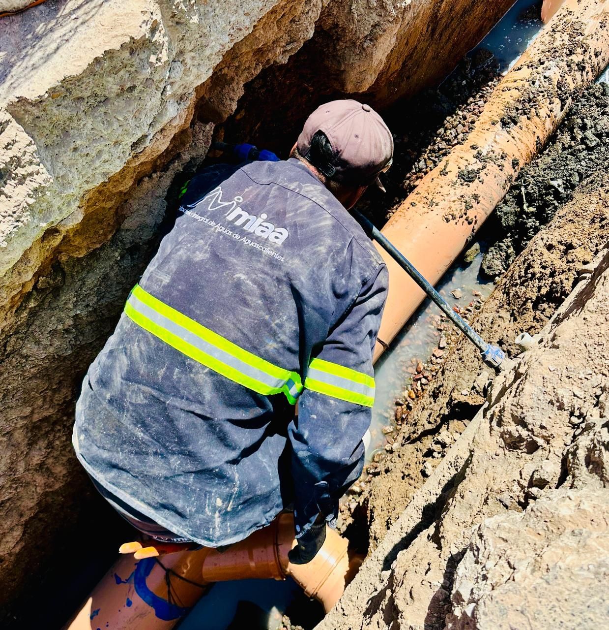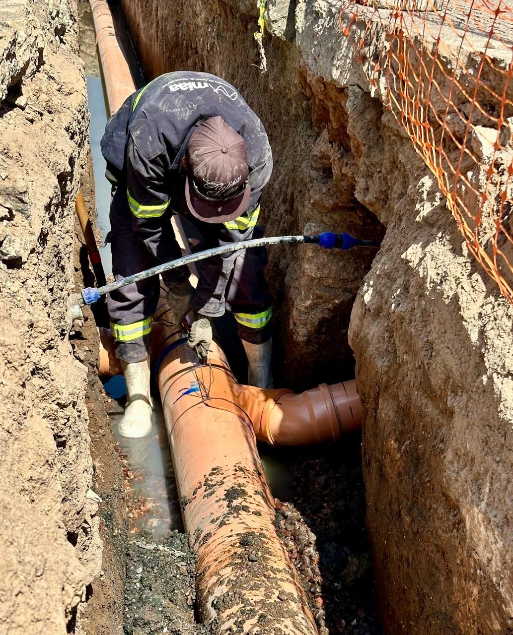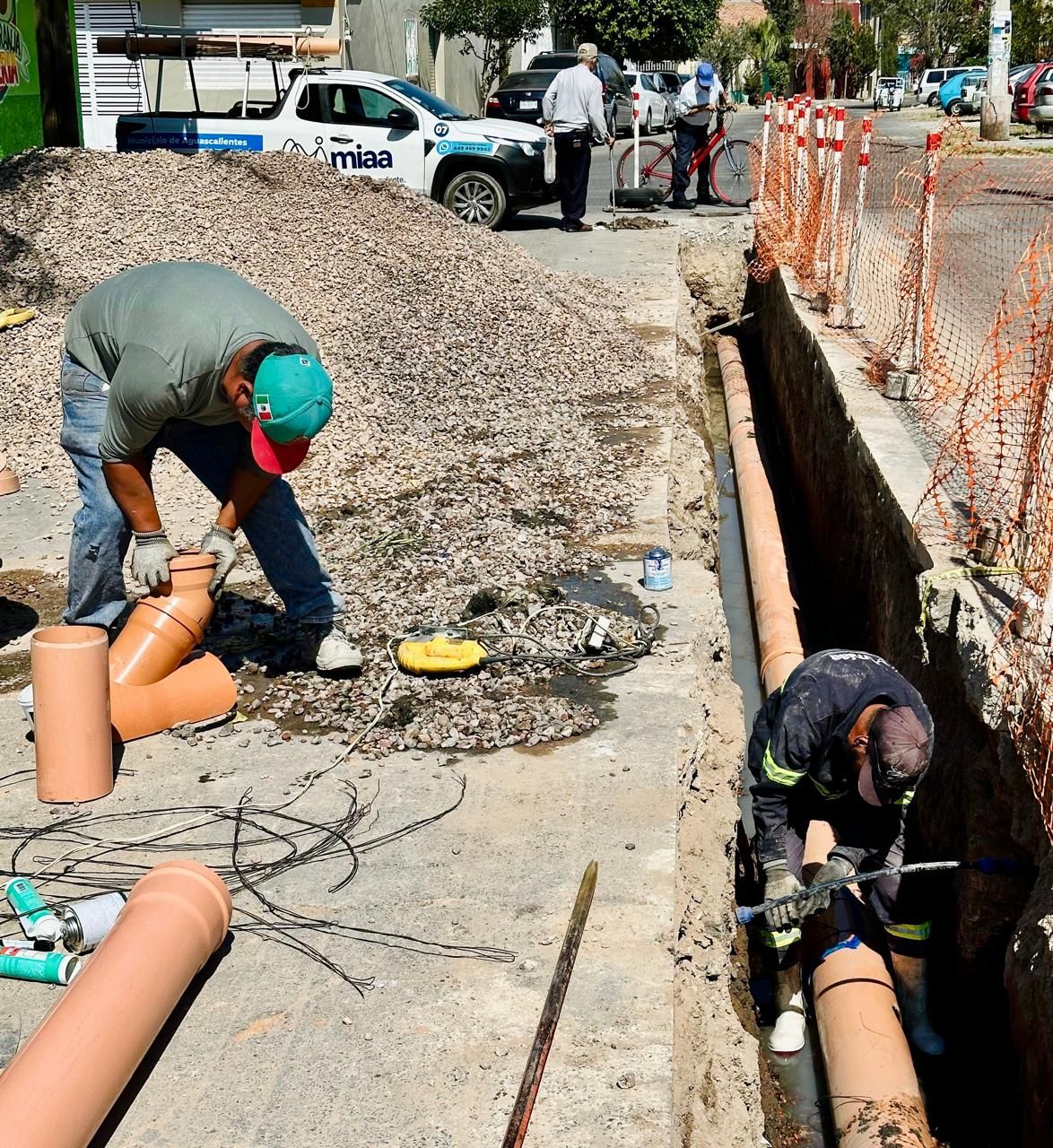 Como parte de estas acciones, MIAA lleva a cabo trabajos de rehabilitación de la red de alcantarillado sanitario en la calle Coahuila, entre Casa Blanca y avenida Aguascalientes, en el fraccionamiento México, con el objetivo de mejorar el servicio.