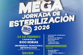 La titular de la Coordinación General de Salud del Municipio de Aguascalientes, María Teresa Rendón Esquivel, informa que se realizará una mega jornada de esterilización felina y canina el martes 24 de febrero en la Universidad Tecnológica Metropolitana que se encuentra ubicada en Gerónimo de la Cueva s/n, fraccionamiento Villas del Río, al oriente de la ciudad.