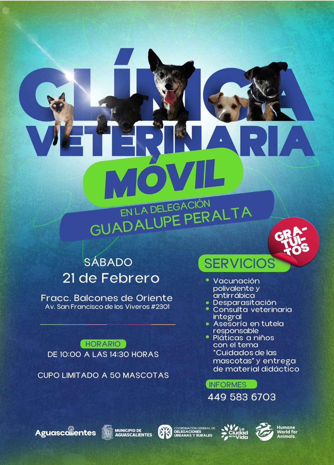 El Municipio de Aguascalientes dio a conocer que gracias al trabajo conjunto entre la Coordinación General de Delegaciones Urbanas y Rurales y la Asociación Humane Humane World for Animals este sábado 21 de febrero dará inicio el Programa de la Clínica Veterinaria Móvil 2026 cuyo objetivo primordial es el de incentivar acciones a favor de los animales de compañía y garantizar su salud.