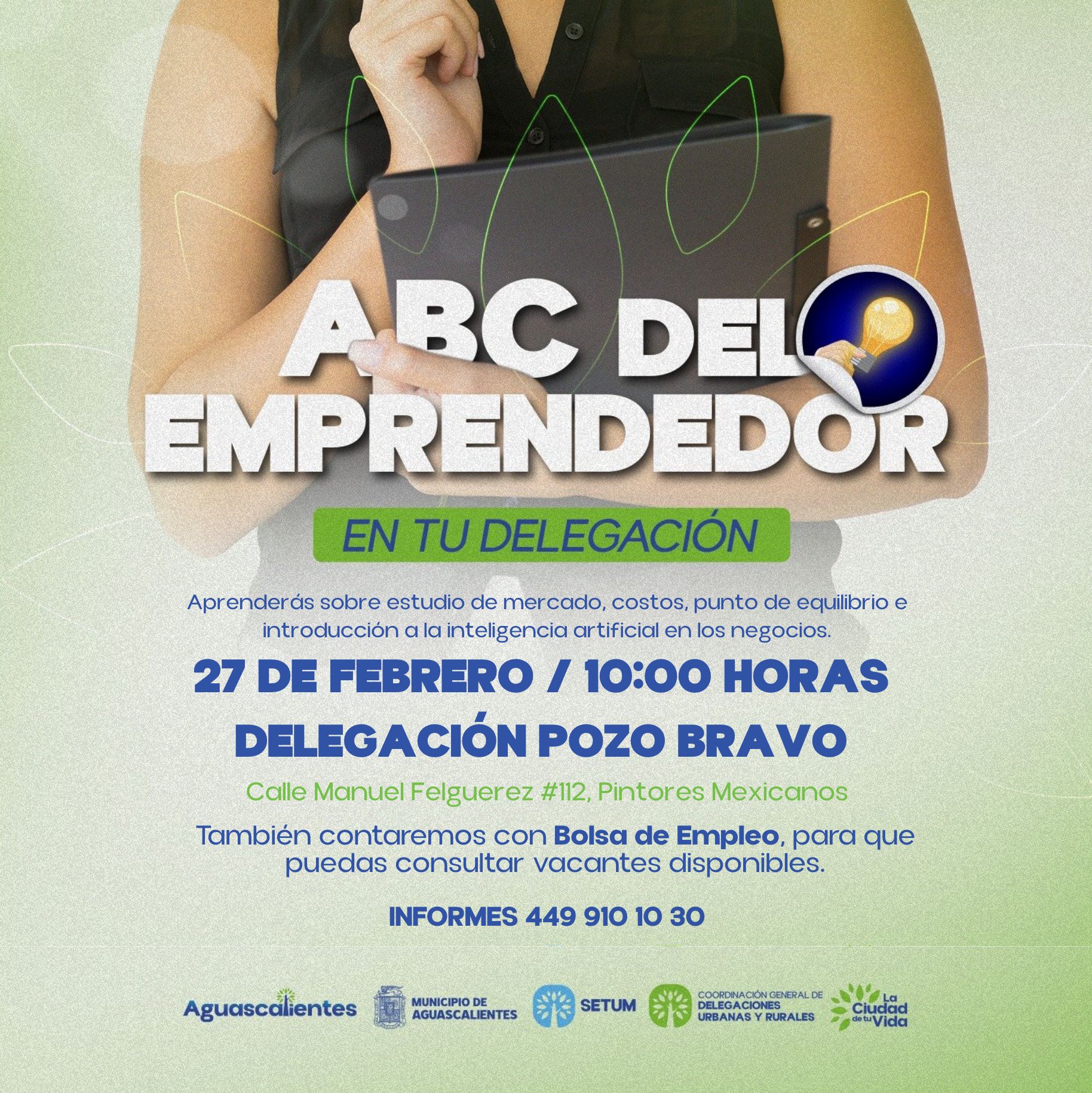 - El ABC del Emprendedor en tu Delegación se realizará el viernes 27 de febrero a las 10:00 horas