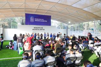 Durante esta entrega de infraestructura deportiva, estuvieron presentes los regidores Alejandro Serrano y Antonio González Guerrero, así como integrantes del Gabinete Municipal, alumnos del Bachillerato General Militarizado (BGM) «1er Escuadrón de Lanceros de Aguascalientes», vecinos y padres de familias de los equipos Kanguros e Hidrotuzos.