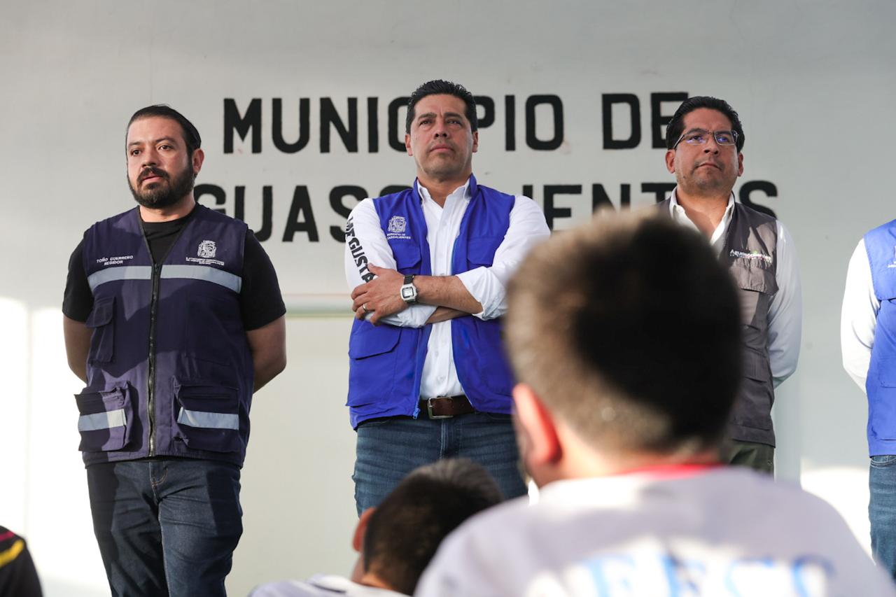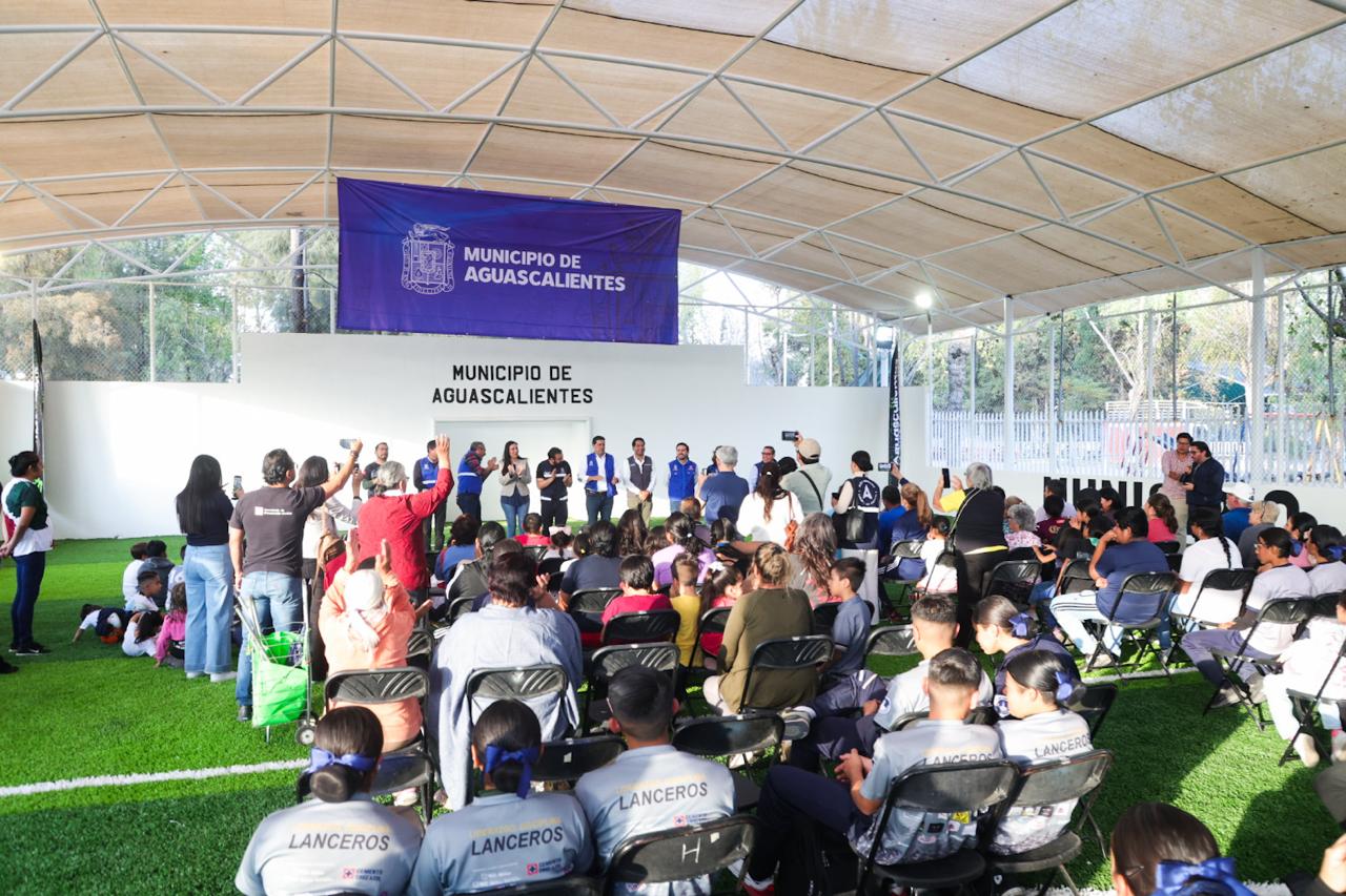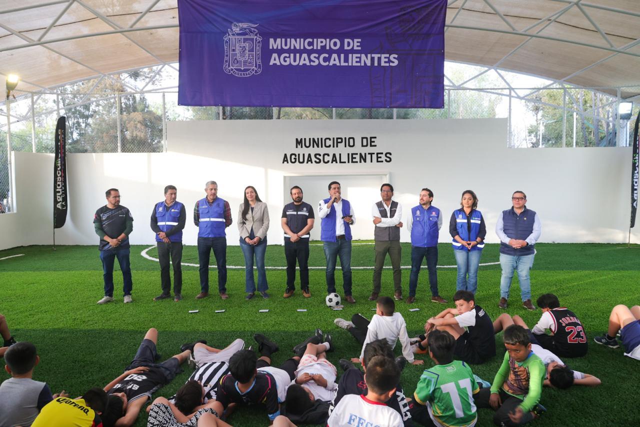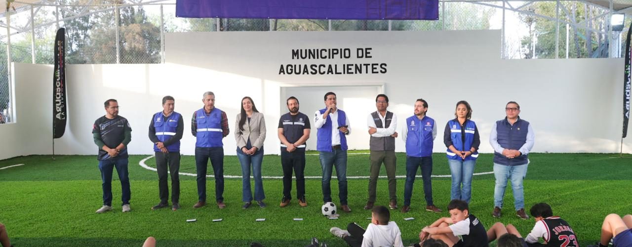 Durante esta entrega de infraestructura deportiva, estuvieron presentes los regidores Alejandro Serrano y Antonio González Guerrero, así como integrantes del Gabinete Municipal, alumnos del Bachillerato General Militarizado (BGM) «1er Escuadrón de Lanceros de Aguascalientes», vecinos y padres de familias de los equipos Kanguros e Hidrotuzos.