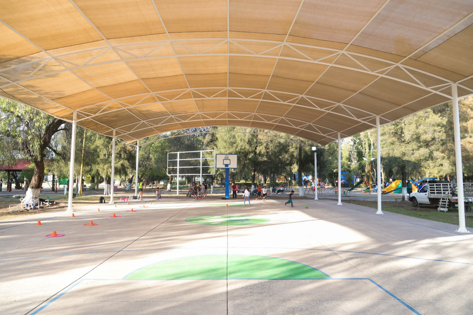 Miguel Ángel Huizar Botello, secretario de Obras Públicas Municipales, destacó que el pasto sintético instalado es de primera calidad con una durabilidad de siete años; también se colocó nueva malla sombra, se reforzaron muros e instalaron luminarias.