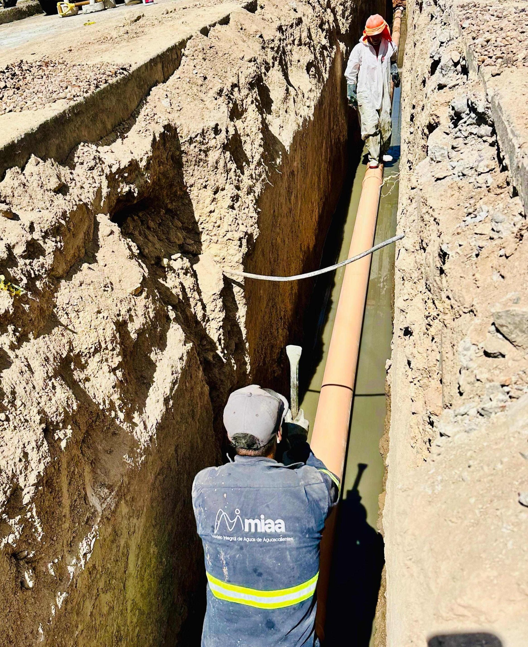 El Modelo Integral de Aguas de Aguascalientes (MIAA) fortalece proyectos de rehabilitación de alcantarillado sanitario en el fraccionamiento Circunvalación Norte.