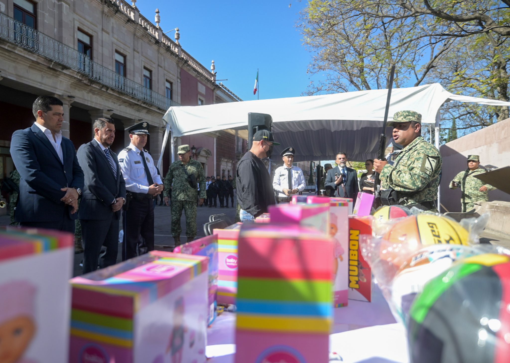 Además, en esta campaña pueden participar niñas y niños y cambiar juguetes bélicos como pistolas por otros como muñecas o balones, y fomentar la conciencia de la sana convivencia y la paz social.