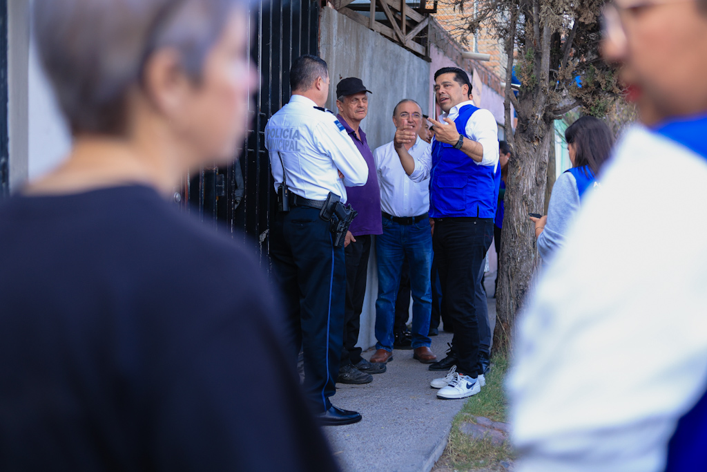 • Se reúne Leo Montañez y personal de MIAA con vecinos del fraccionamiento Ojocaliente III para dar a conocer acciones de mejora del servicio de agua potable.