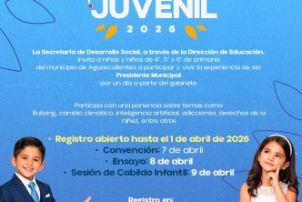 El Municipio de Aguascalientes, a través de la Secretaría de Desarrollo Social (SEDESOM), convoca a las niñas y niños que estén estudiando cuarto, quinto y sexto de primaria a participar en el programa “Cabildo Infantil y Juvenil”, en el que podrán desempeñarse como presidente municipal, síndicos, regidores y secretarios del gabinete municipal.