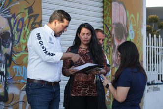 El presidente municipal, Leo Montañez visitó a familias y comerciantes del fraccionamiento San Marcos al poniente de la ciudad para atender reportes y solicitudes en materia de servicios públicos.