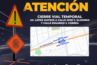 El director de Movilidad de la Secretaría de Seguridad Pública Municipal, José Luis Rodríguez Montoya, informó que, debido a trabajos de obra pública, se mantendrá restringida la circulación vehicular en la lateral de la Avenida Adolfo López Mateos, en el tramo que conecta con la calle J. F. Elizondo, en ambos sentidos de circulación.