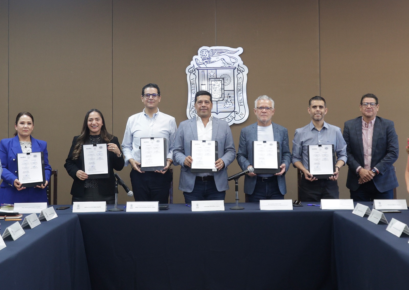 En la firma de convenio estuvieron presentes la síndica procuradora, Yadira Azucena Salas Aguilar; el síndico de hacienda, Octavio Alberto Ozuna; las y los regidores Alejandro Serrano Almanza, Leslie Atilano Tapia, Abdel Luévano Núñez, Martha González Estrada, Karla Espinoza Esparza, Juan Manuel Gómez Morales, Alejandra Orozco Ramírez, Gustavo Granados Corzo, Ivón González Martínez, Juan Carlos Espinoza Esparza y Cindy Ruvalcaba de Loera; Luis Enrique García López, secretario del H. Ayuntamiento y director general de Gobierno; Martha Miriam Rodríguez Tiscareño, secretaria de Finanzas Municipales y Alberto López Regalado, asesor de Enlace Ejecutivo del Patronato de la Feria Nacional de San Marcos.