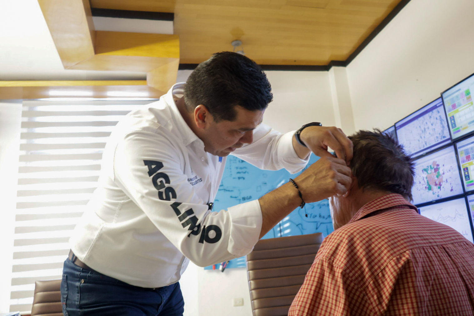 Como resultado de las peticiones que recibe el presidente municipal, Leo Montañez durante sus recorridos por las colonias y comunidades de Aguascalientes, hoy se llevó a cabo la entrega de aparatos auditivos solicitados por Blanca Navarro y Rodolfo Acosta, quienes estuvieron acompañados por el protesista Francisco Casillas, representante de DIME Centro Auditivo.