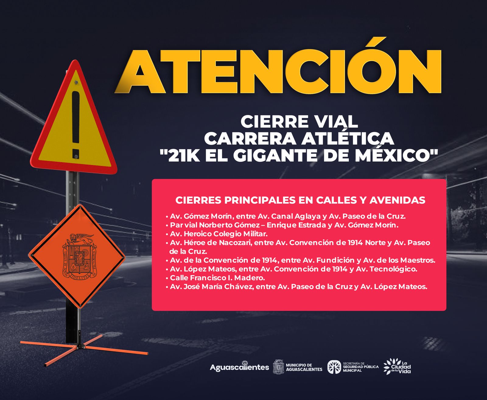 La Secretaría de Seguridad Pública Municipal (SSPM), a través de la Dirección de Movilidad, informa a la ciudadanía que con motivo de la carrera atlética “21K El Gigante de México”, se implementará un operativo de cierres viales este sábado 18 de abril.